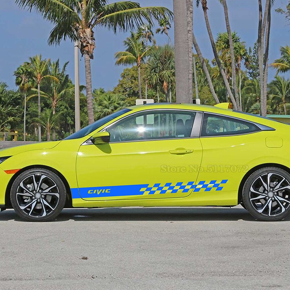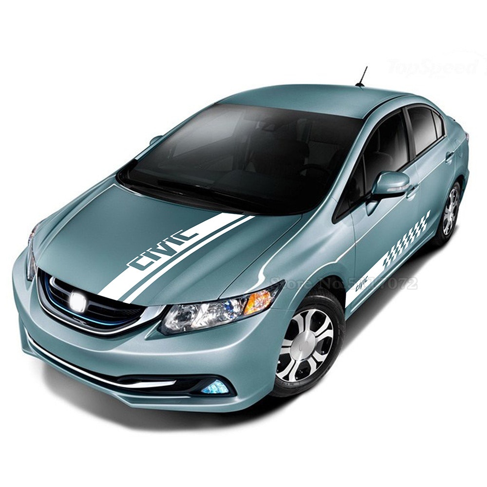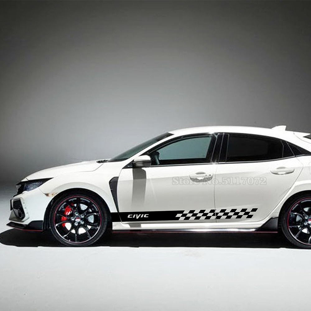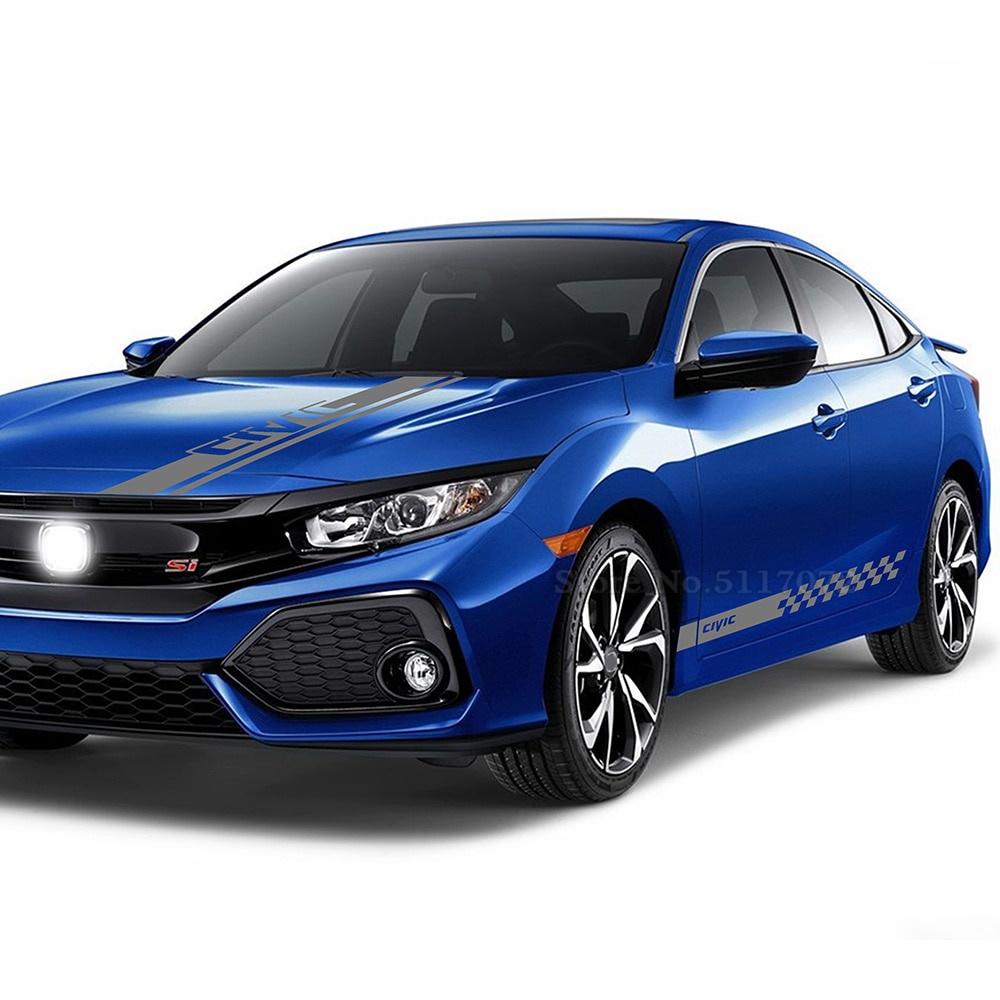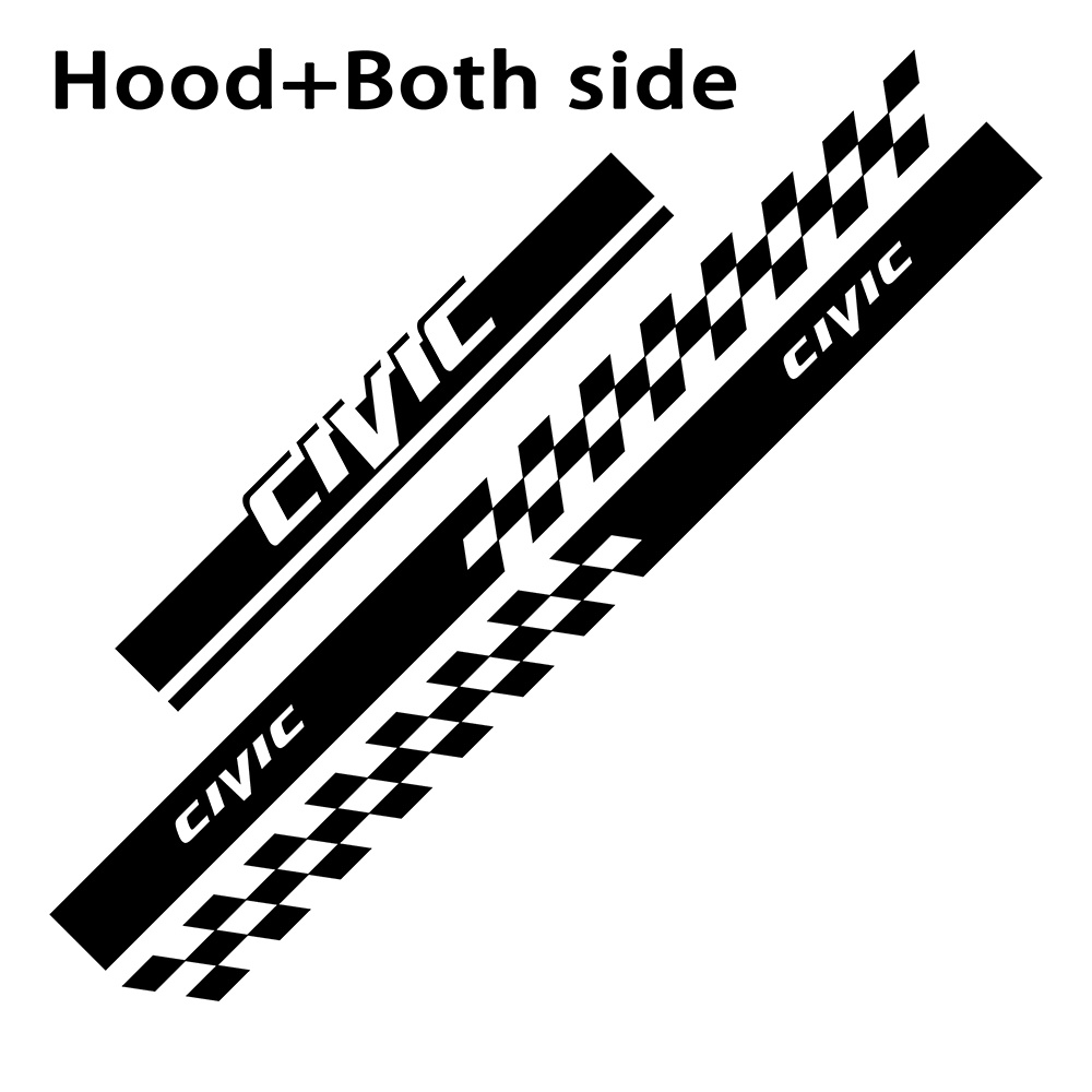 For Honda Civic TypeR Hatchback Sedan Car Door Side Skirt Sticker Auto Hood Bonnet Stripes Racing Sport Styling Vinyl Film Decal