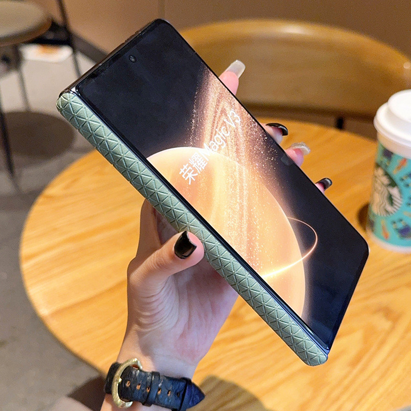 For Honor Magic V3 Leather Case Built-in Center Axis Electroplating Shockproof Cover