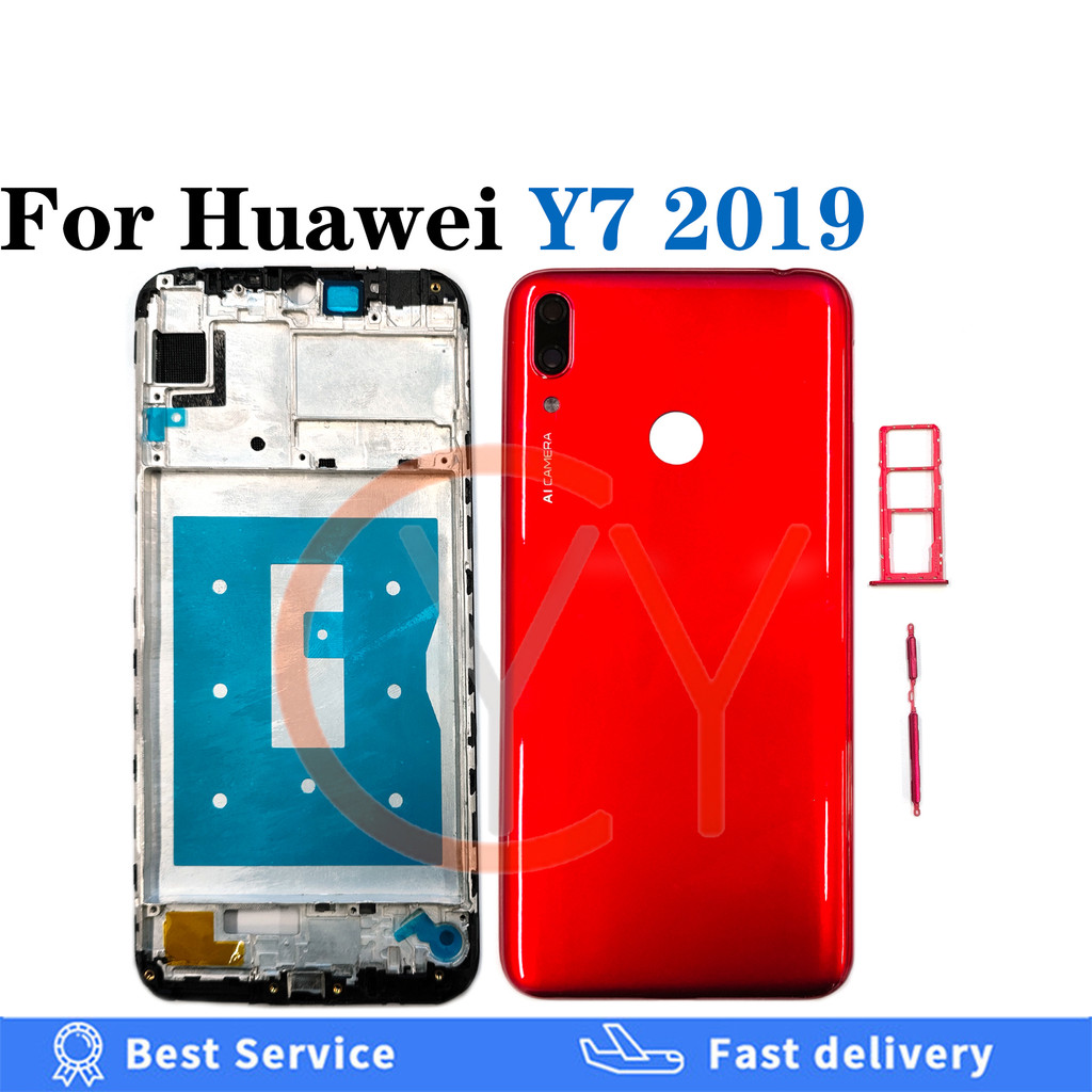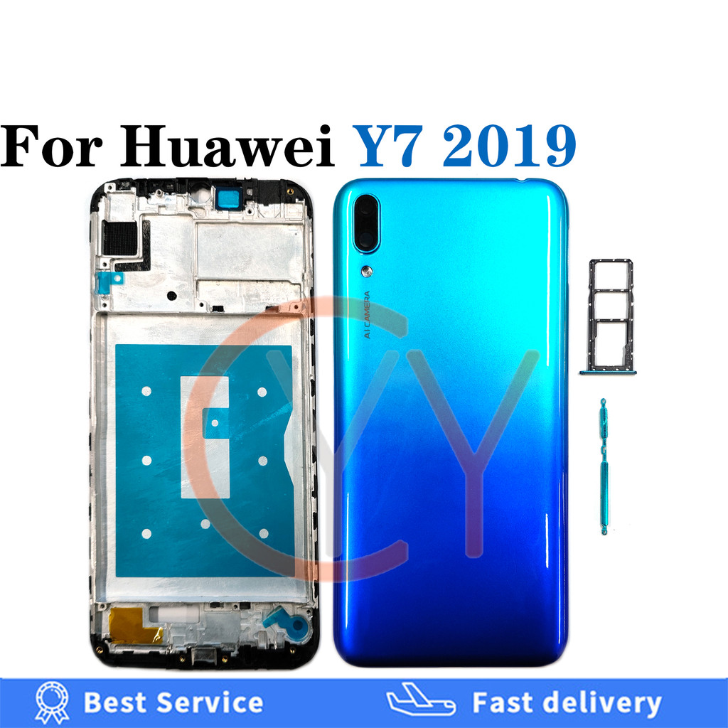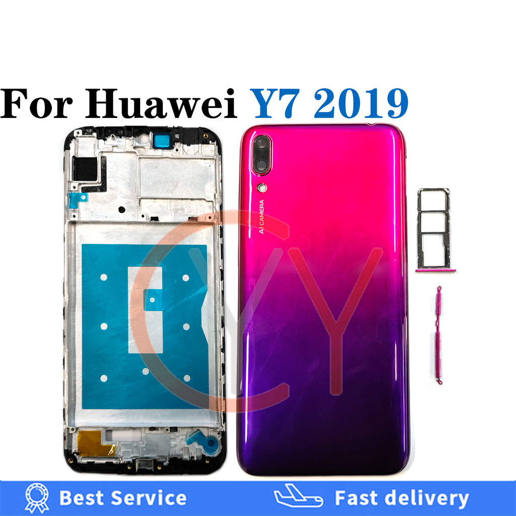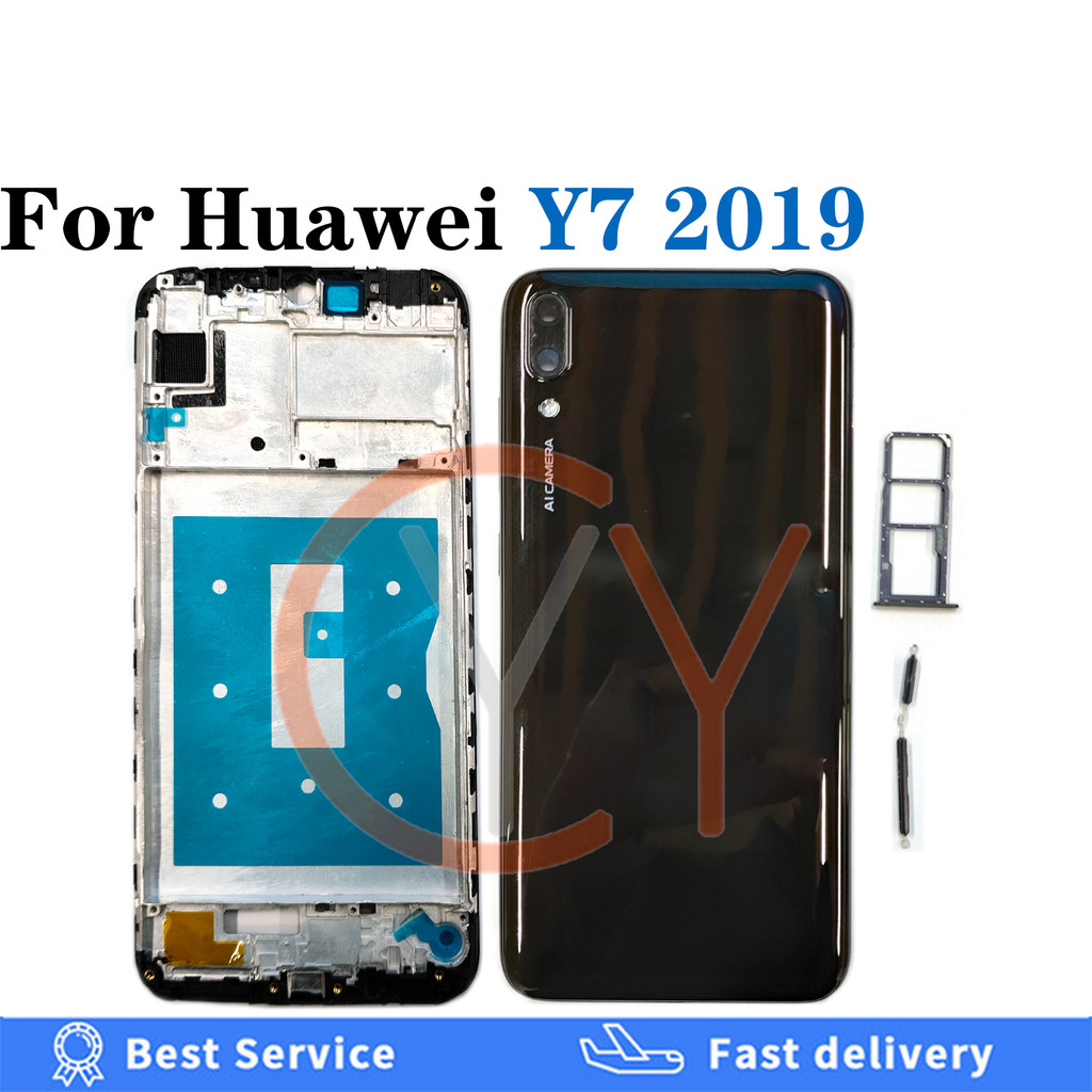 For Huawei Y7 prime Pro 2019 back cover Battery Housingr Volume Button on off power button battery cover Door rear housing + LCD Front Frame + SIM Tray Card Replacement
