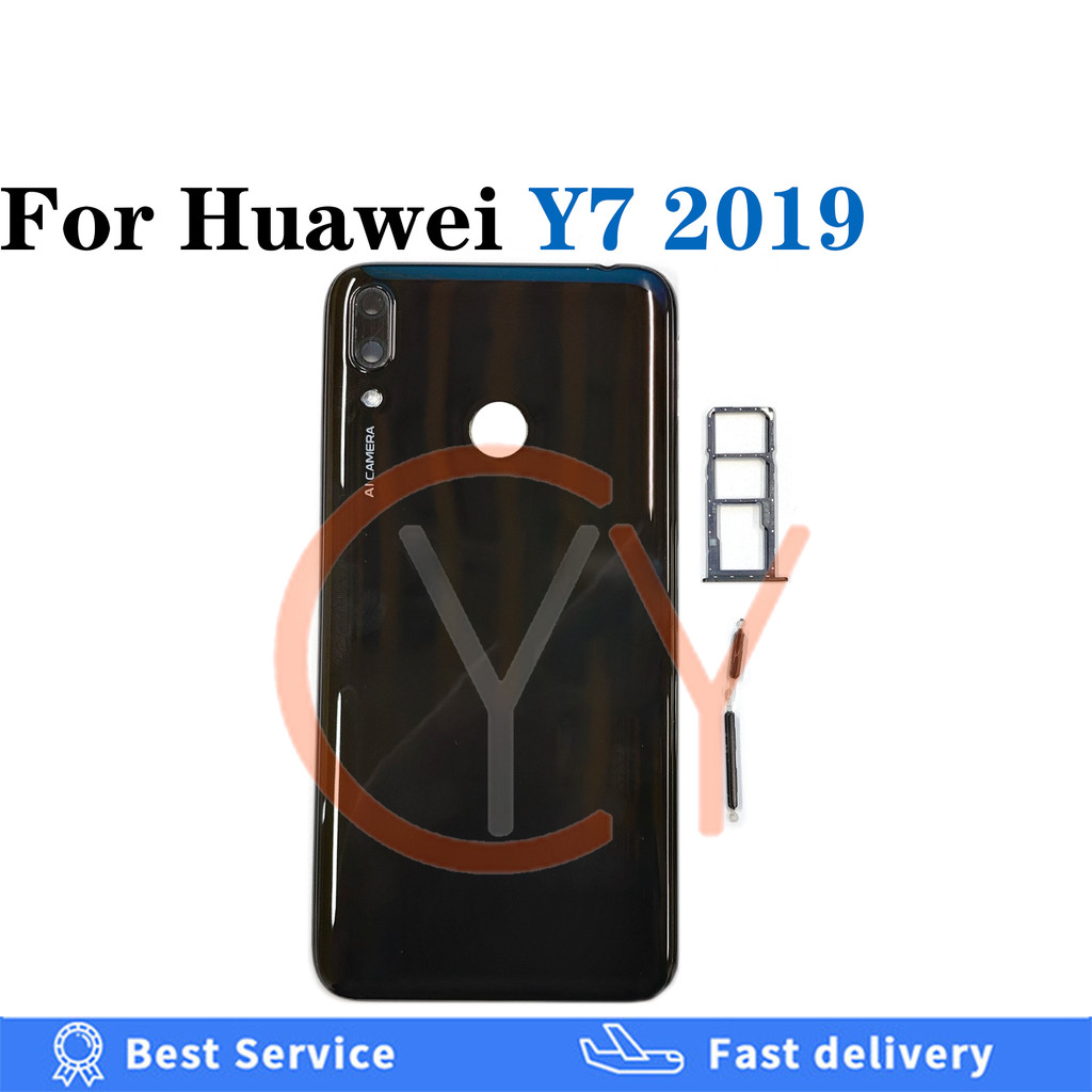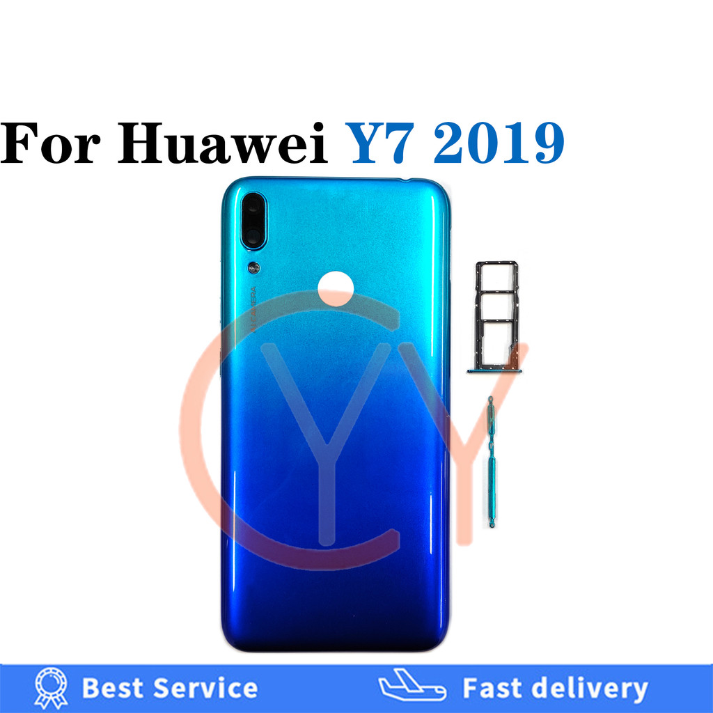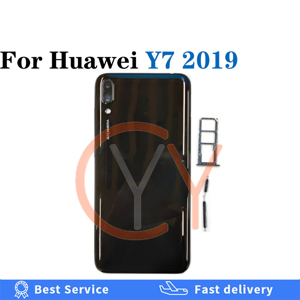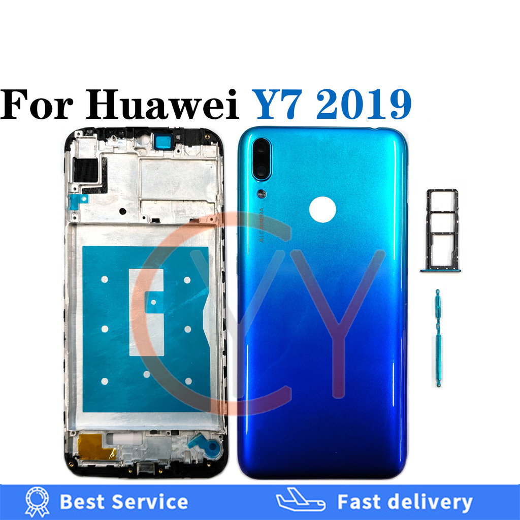 For Huawei Y7 prime Pro 2019 back cover Battery Housingr Volume Button on off power button battery cover Door rear housing + LCD Front Frame + SIM Tray Card Replacement