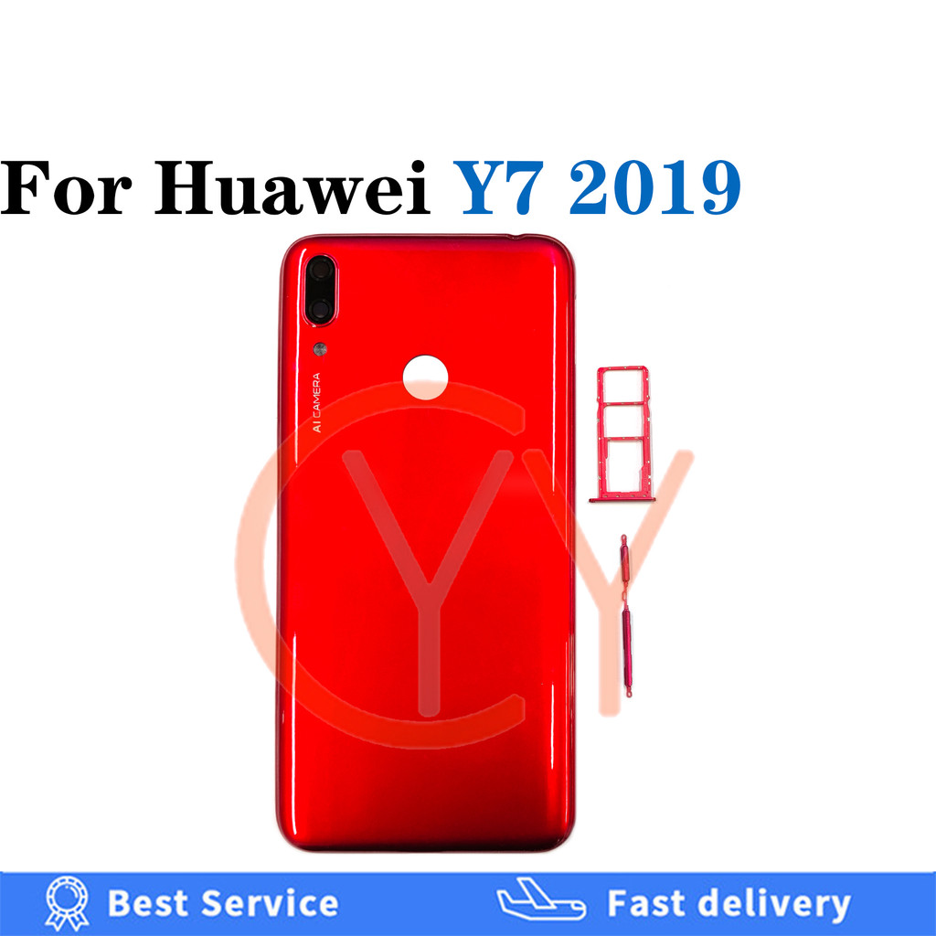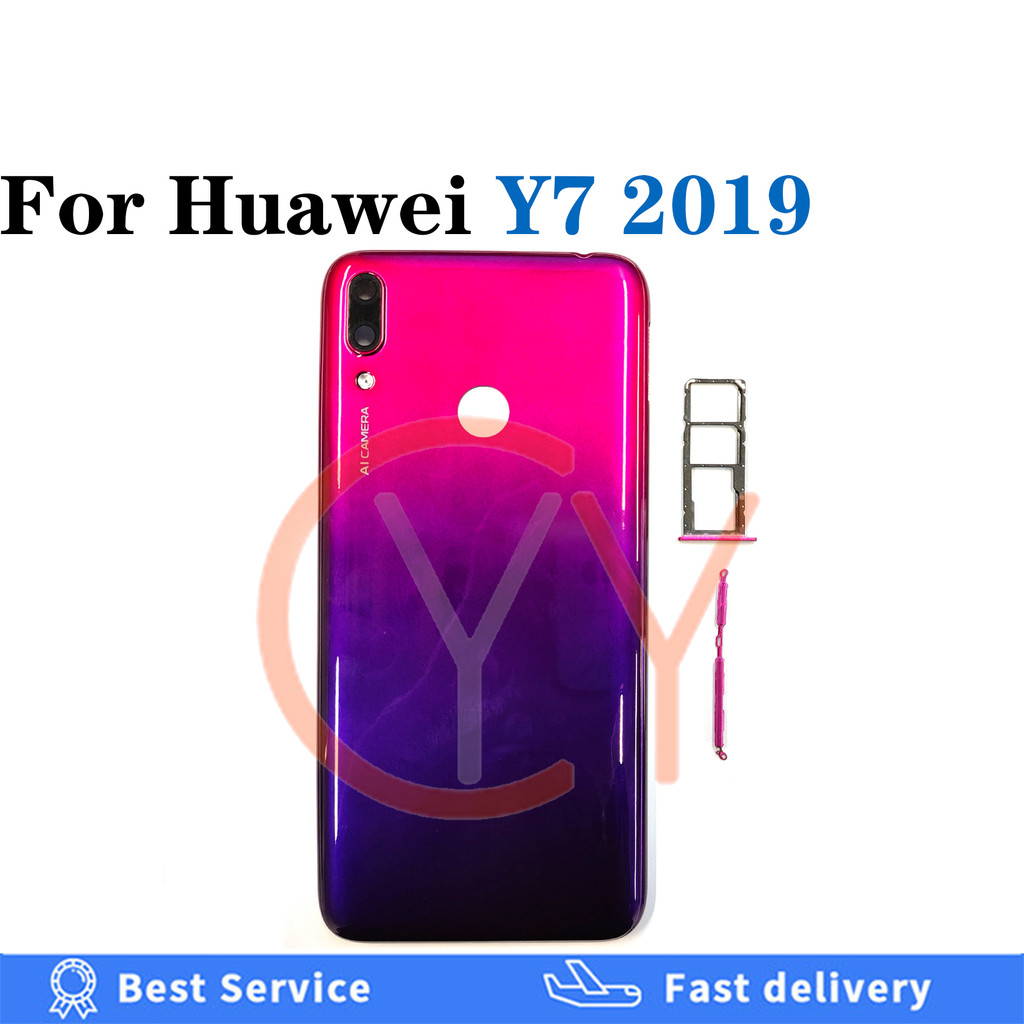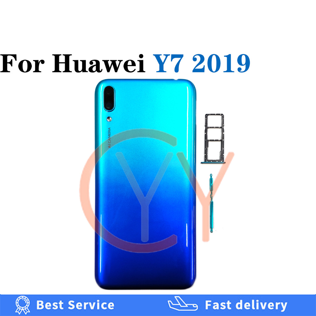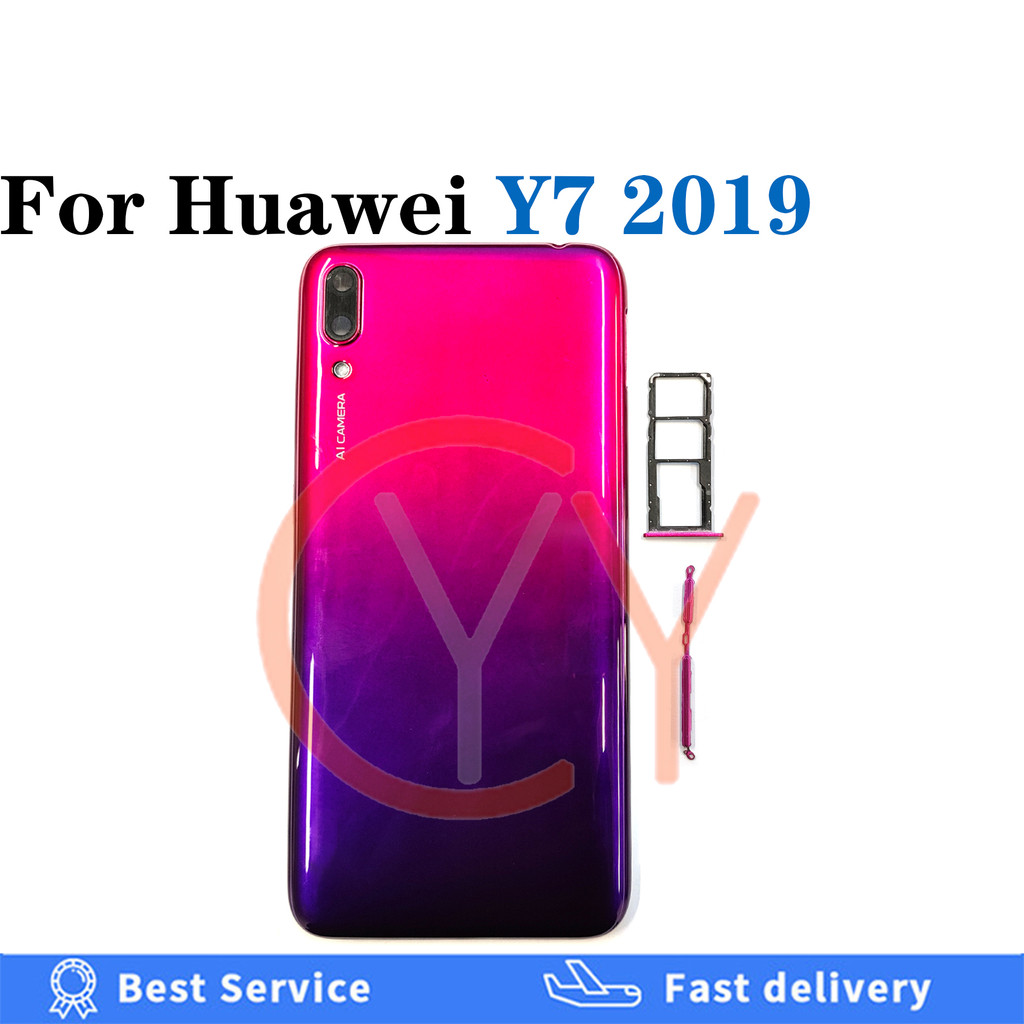 For Huawei Y7 prime Pro 2019 back cover Battery Housingr Volume Button on off power button battery cover Door rear housing + LCD Front Frame + SIM Tray Card Replacement