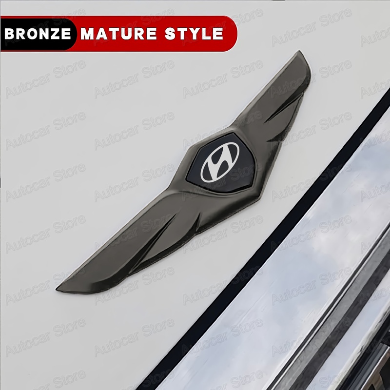 For Hyundai Genesis Car Front Hood Ornaments Bonnet Metal Decoration Logo Angel Wings Stickers fit HB20 Creta Venue Porter Accent i10 Creta Tucson Kona Accessories
