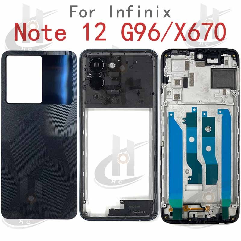 For Infinix Note 12 G96 / X670 Battery Back cover Housing middle frame + Button + LCD Front frame + Lens Camera Frame