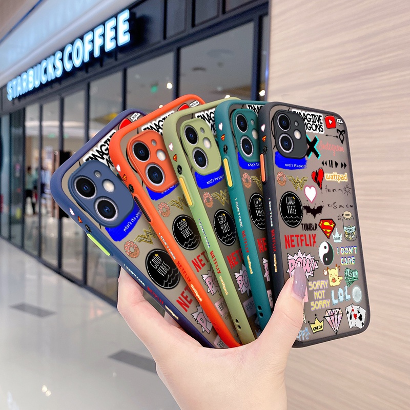 For Infinix Note 7 Lite Case Tide Brand Cool Pattern Square Edge Design Frosted Transparent Hard Phone Cases Cas Full Cover Camera Softcase Boy