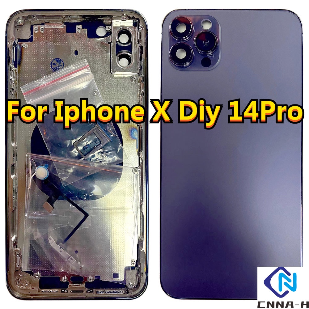 For Iphone X Like 14 Pro DIY Back Housing X Into 14Pro Stainless steel Middle Chassis Frame Cover Battery Door Parts With Logo