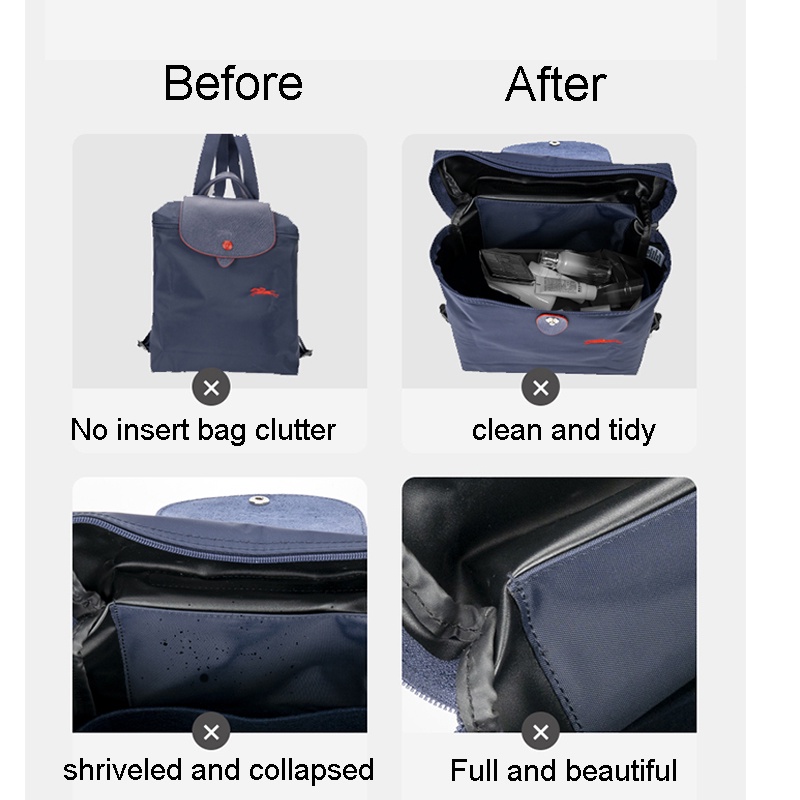 For Longchamp LE PLIAGE Backpack Felt Insert Organizer Women and Men Travel Rucksack Shapers Tote Bags Inner Purse