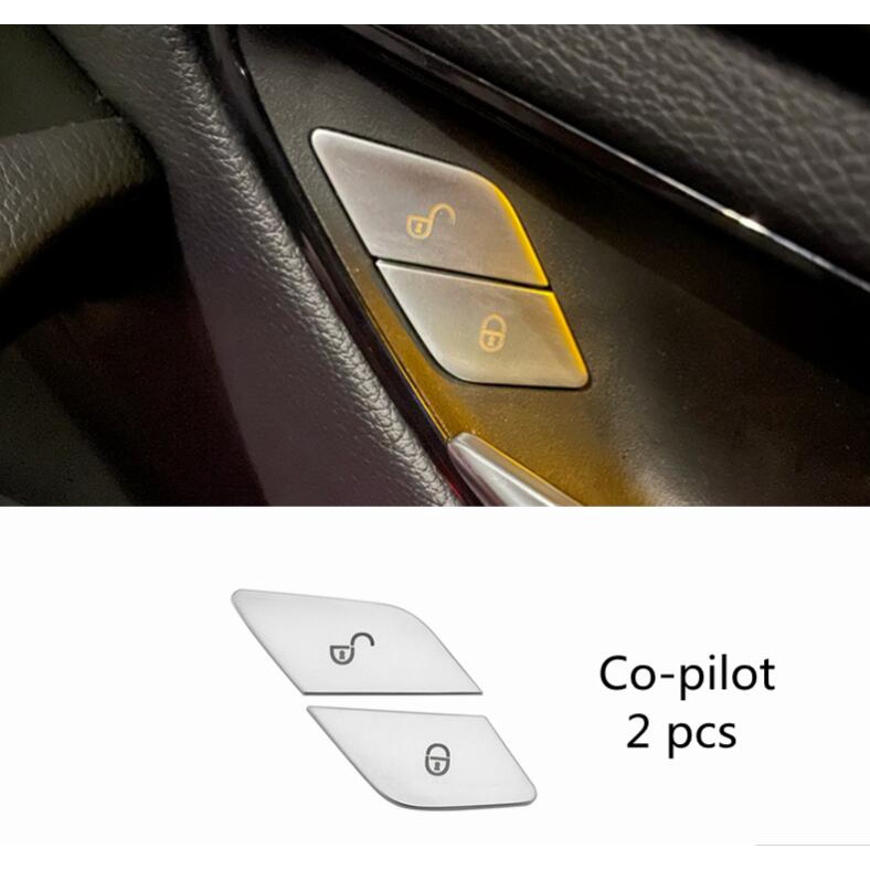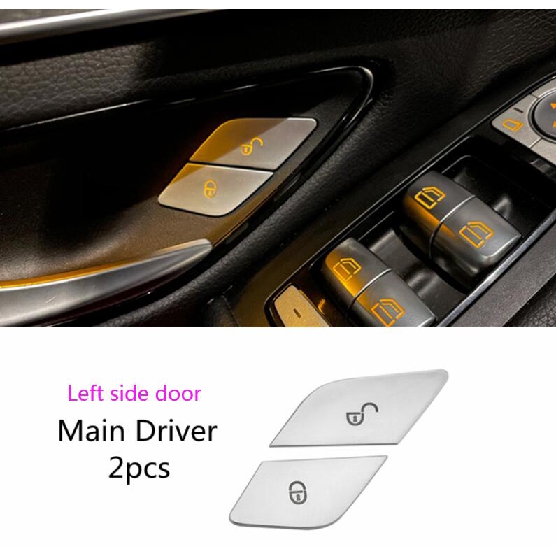 For Mercedes Benz W213 W205 C E S class W222 GLC X253 2015-19 Car Front Door Lock Switch Unlock Button Sticker Trim cars styling Chrome style