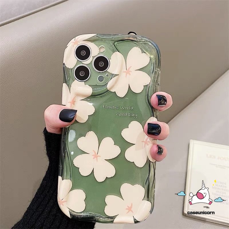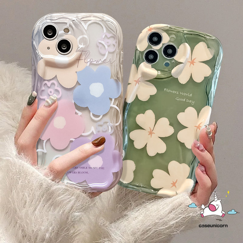 For OPPO Y38 A16 A78 A58 A96 A7 A12 A57 A52 A15 A92 A1k A74 A95 A54 A77 A31 A17k A5s A16s A76 A77s A17 A3s A32 A9 A5 A35 A12E 3D Wavy Curved Edge Fresh Floral Flowers Soft Case