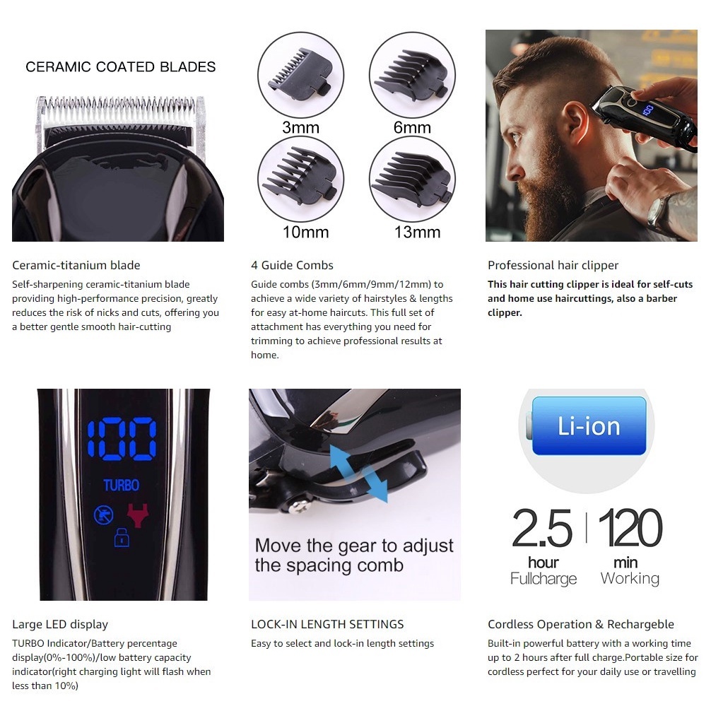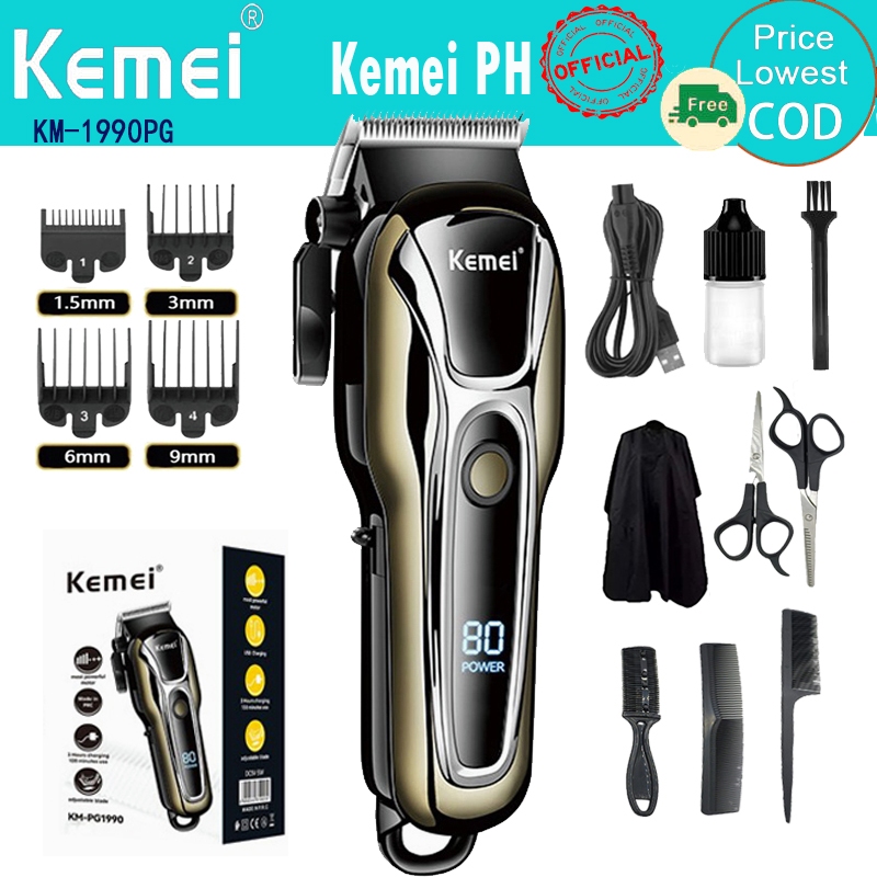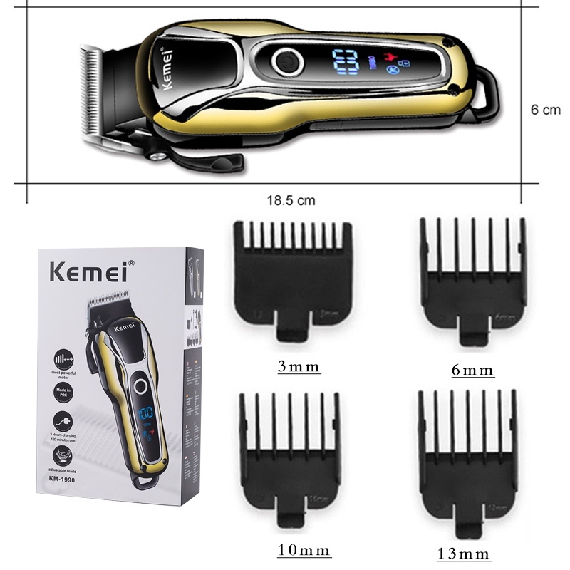 Kemei KM-1990PG Electric Washable Hair Clipper Cutter Rechargeable Hair Cutting Machine For Men