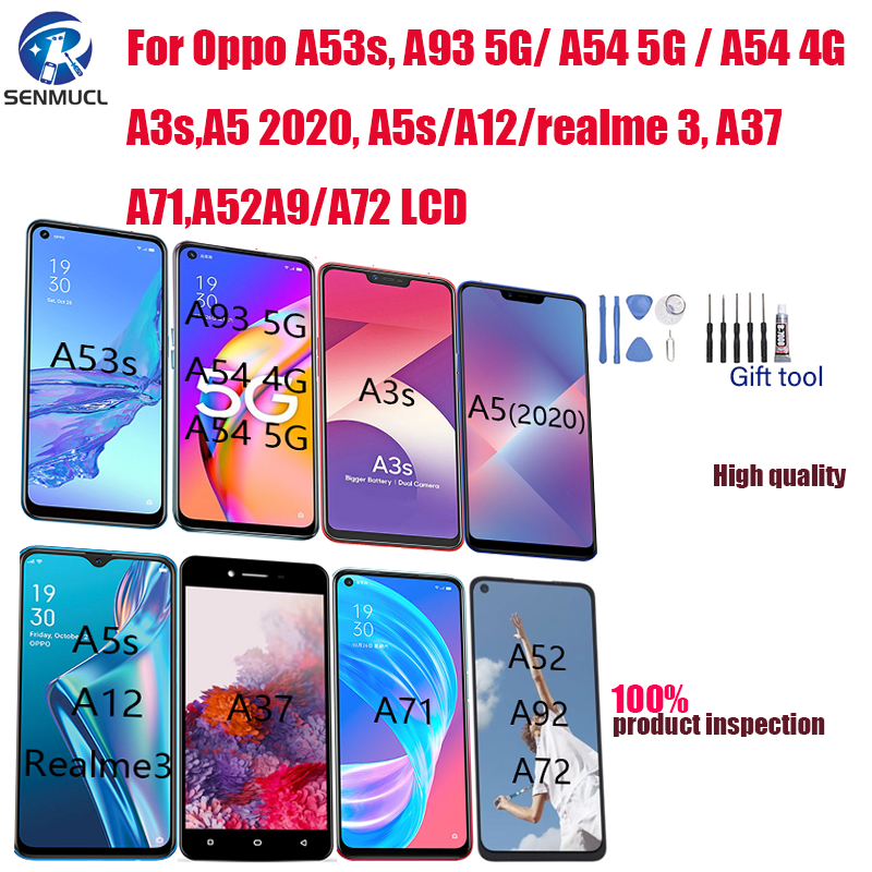 For Oppo A53s, A93 5G A54 A3s,A5 A5S A37 A71 A9 A12 realme 3 LCD Display Screen Touch Panel Digitizer Assembly With Frame