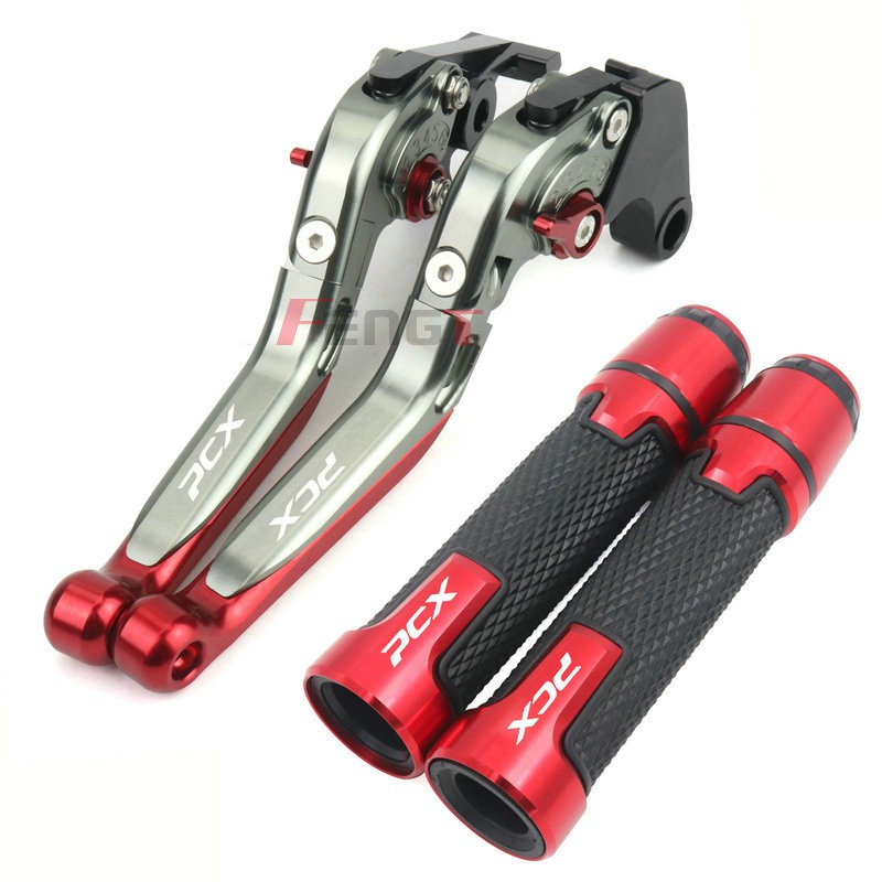 For PCX 160 ABS PCX160 ABS CBS CNC aluminum 6-stage adjustable Foldable brake lever clutch lever with Handlebar grips glue + Handle Guard Handguard + Water Drink Cup Holder With Br