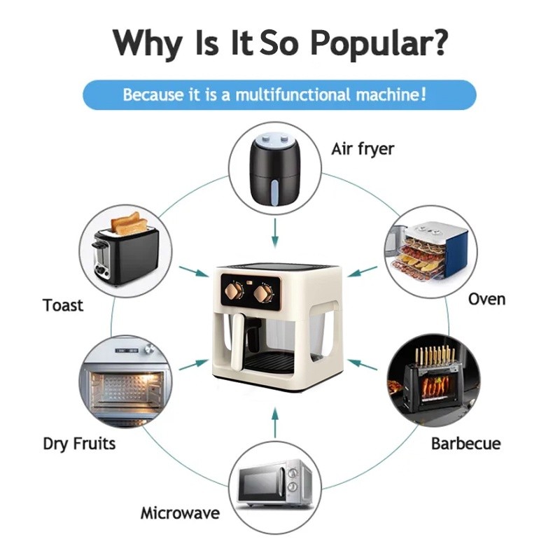 Large Capacity Air Fryer Visual Glass French Fryer Intelligent Electric Fryer Timed Temperature Con