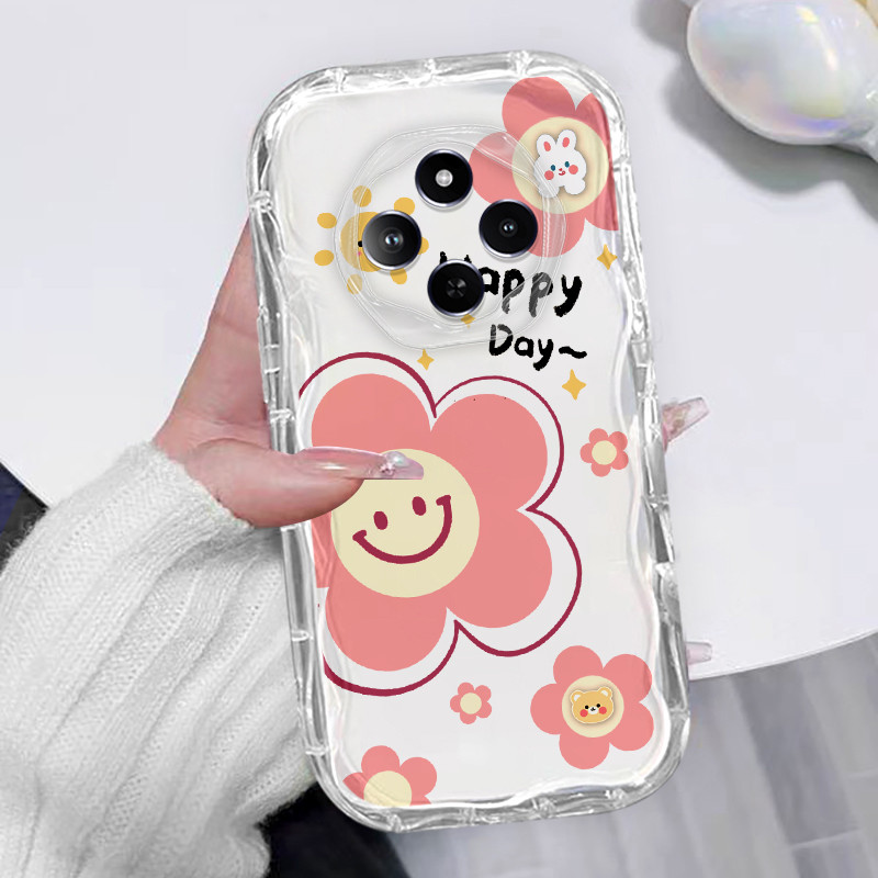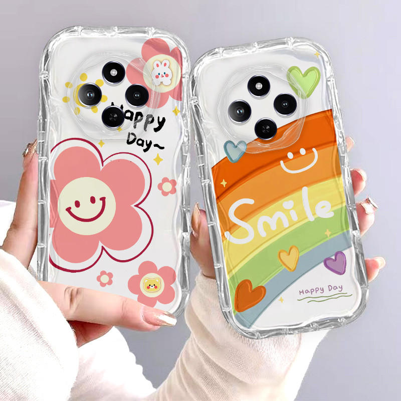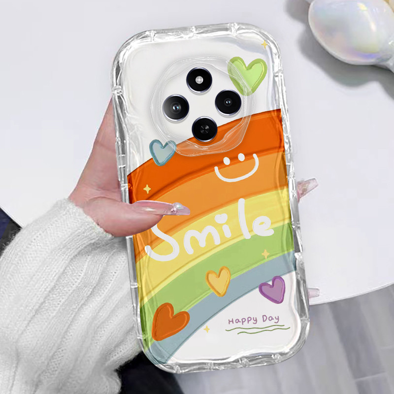 For Redmi 14C 4G Cartoon smiley face transparent phone case fully covered with cartoon rainbow soft TPU material PHSFX2