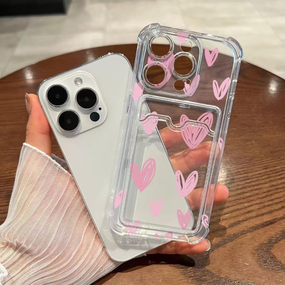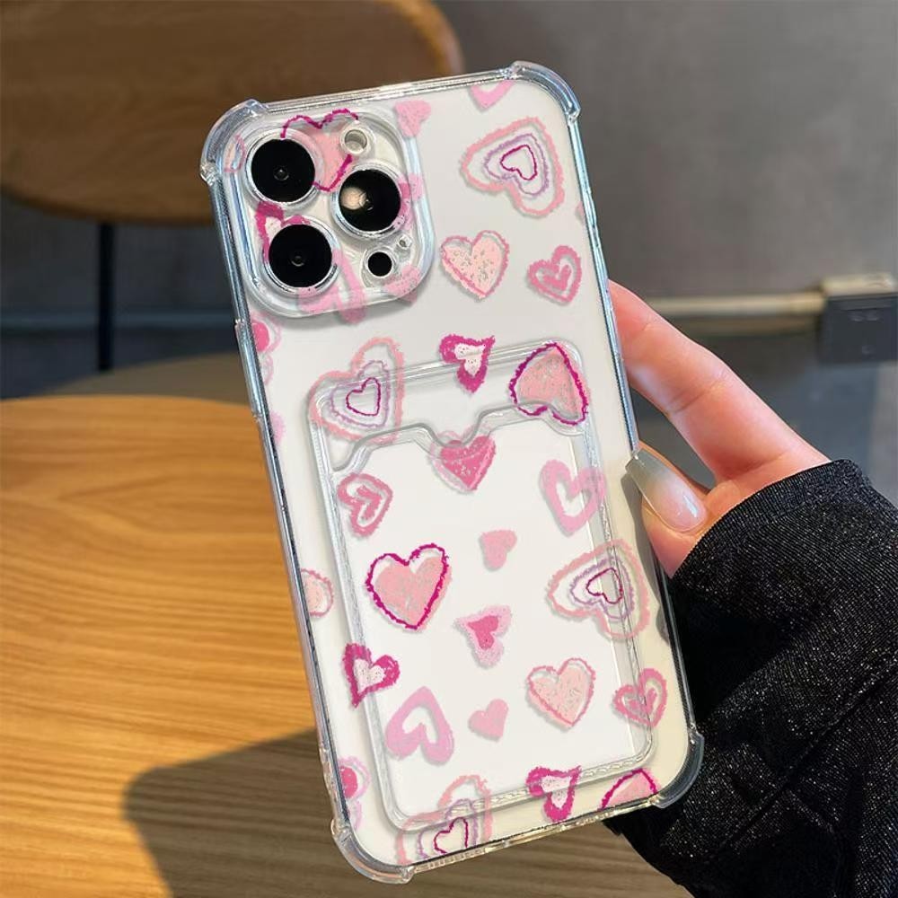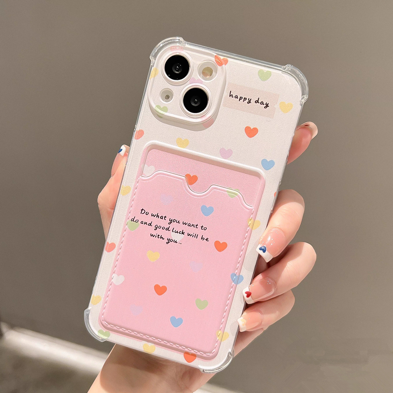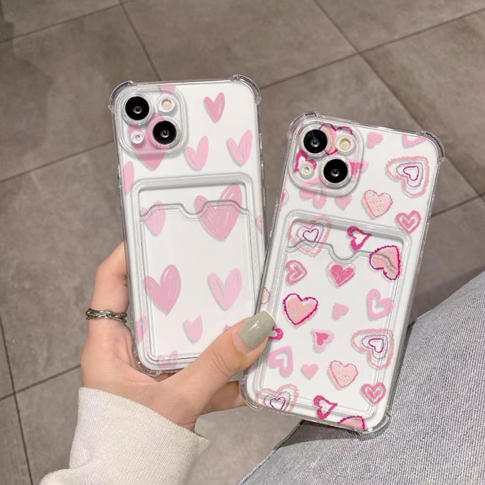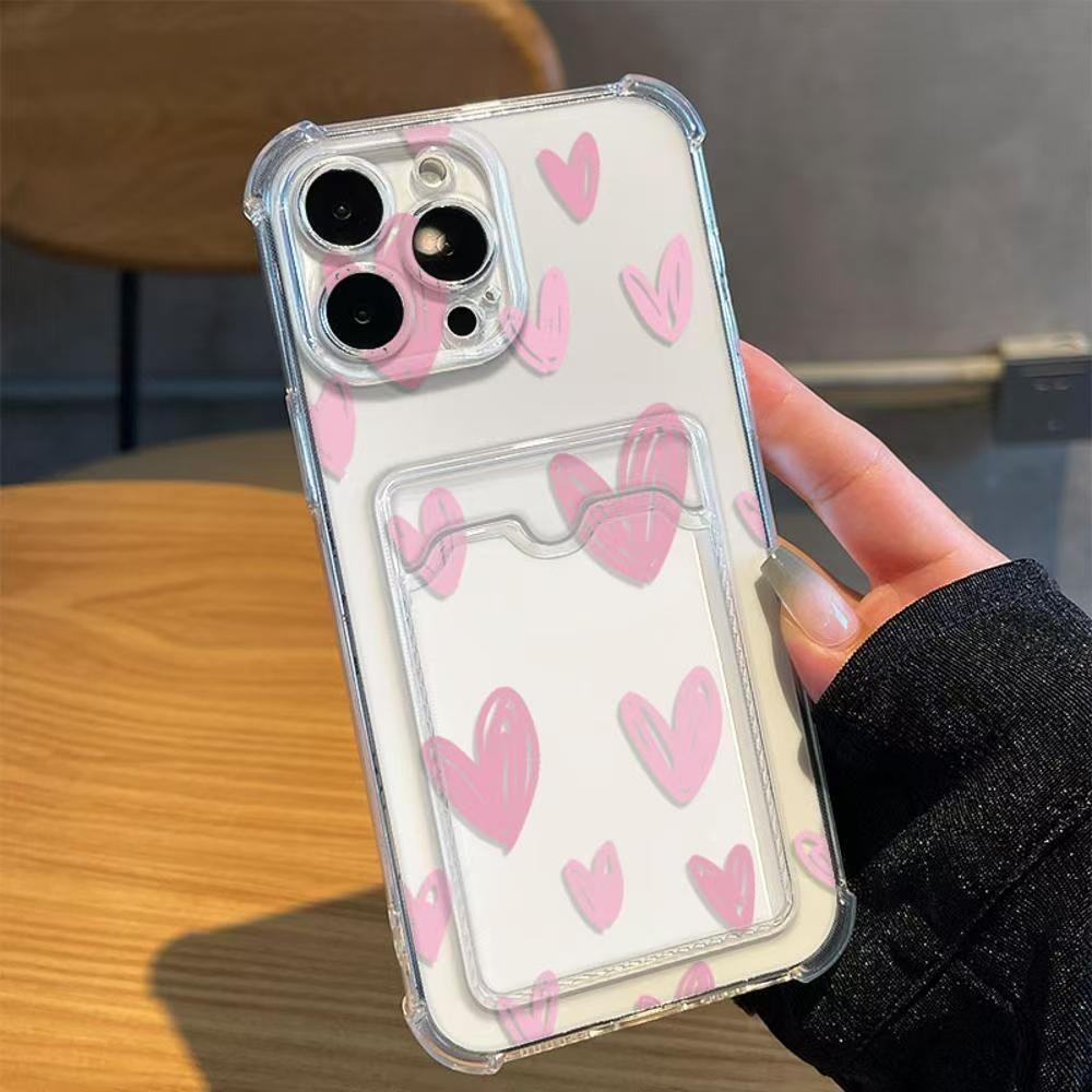 For Samsung Galalxy A13 A12 A22 A15 A34 A14 A73 A25 A42 A53 A55 A21S A05 A24 A32 A35 A33 A54 5G A23 4G A20 A03S A30 A50 A50S A10 A10S Cute Love Heart Case With Card Holder