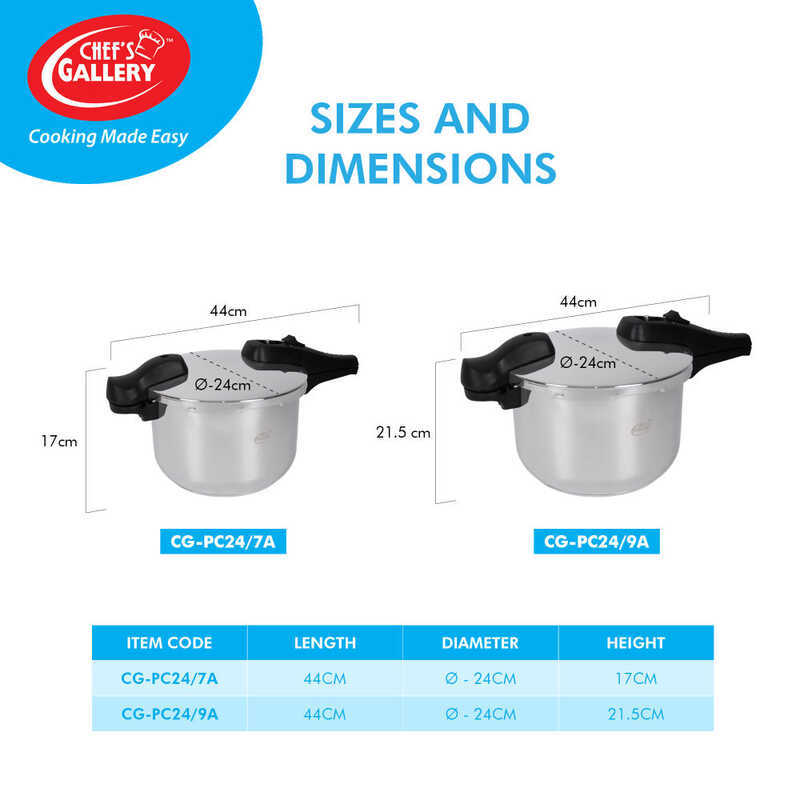 Chef's Gallery Stainless Steel Pressure Cooker | Multi-Purpose Pot Ideal For Serving 9-11 Perso