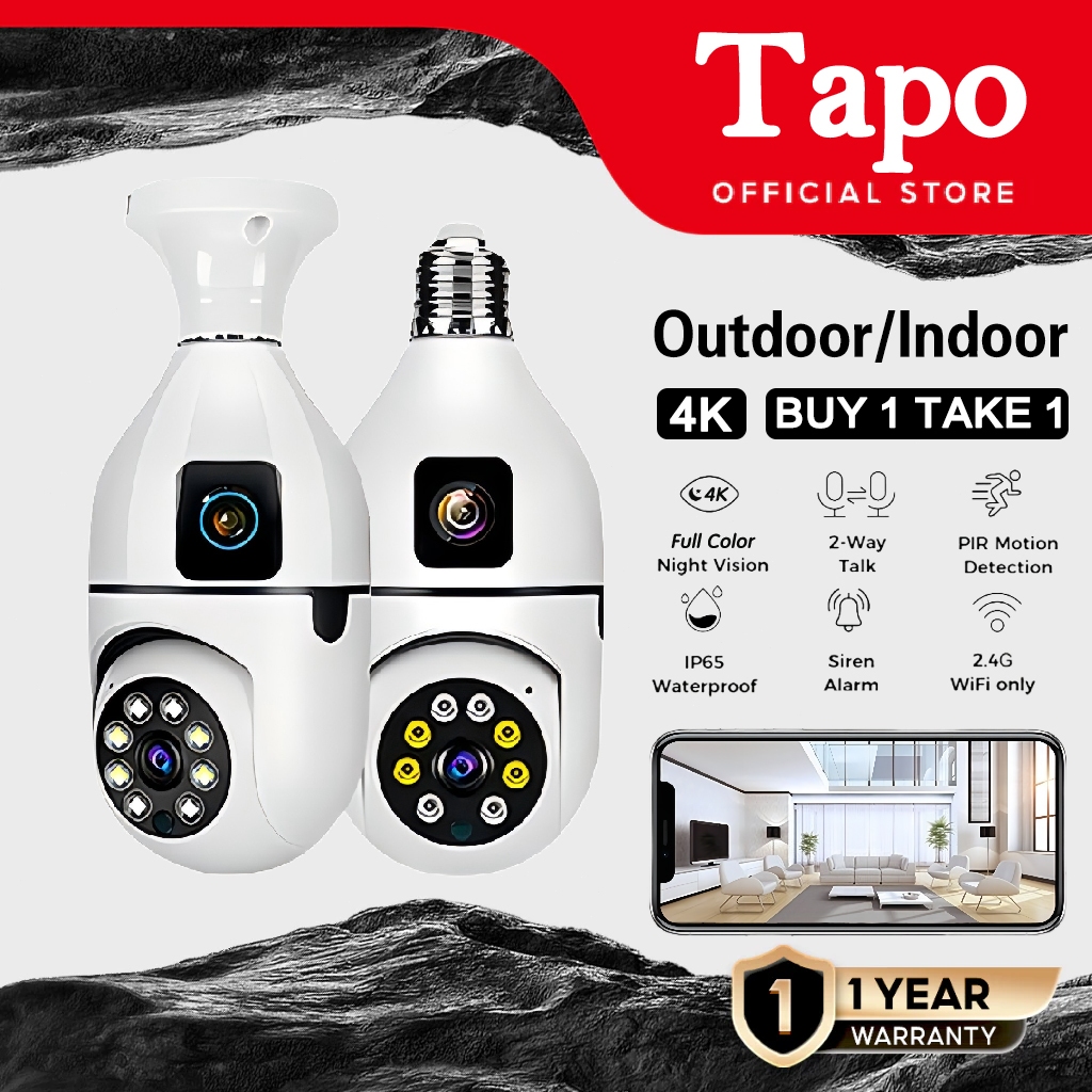 4K HD V380 CCTV Camera Dual Lens 50MP WIFI Connect To Cellphone PTZ Waterproof IP Security E27 Cam