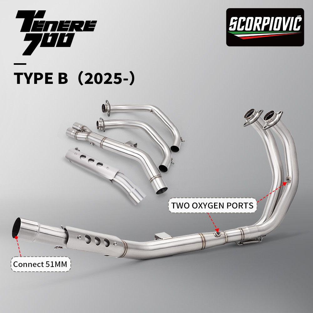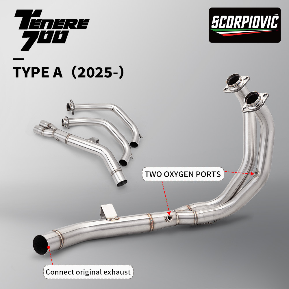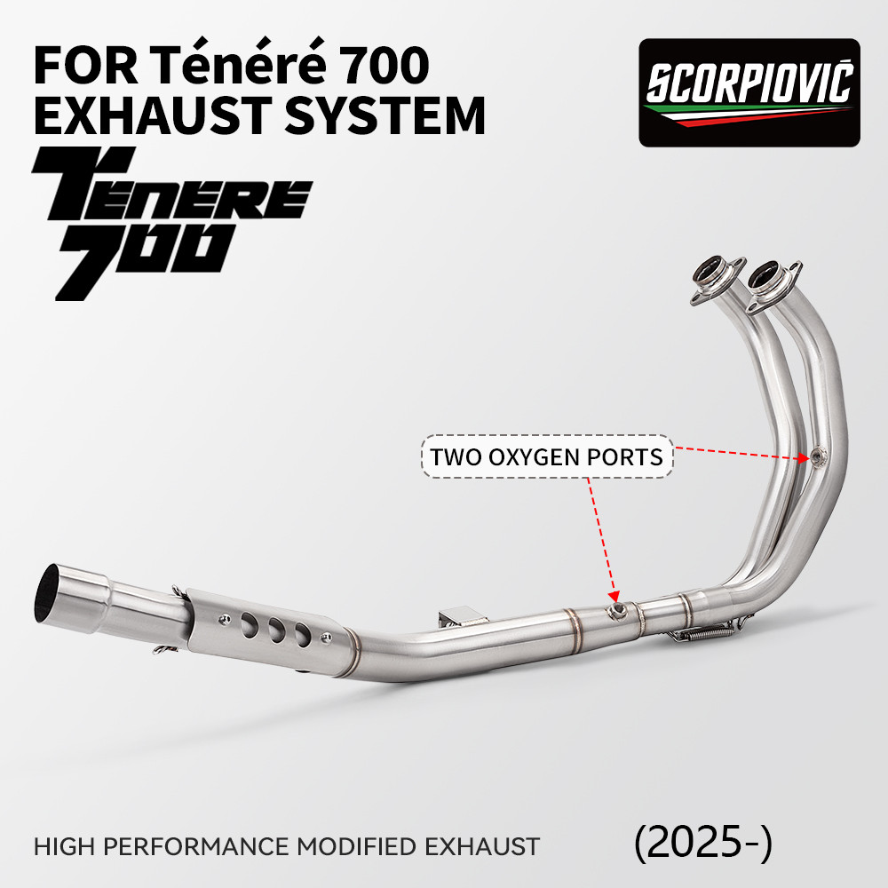 For TENERE 700 T700 2019-2025 Motorcycle Exhaust Modify Manifold Stainless Escape Front Link Pipe With 2 oxygen sensors