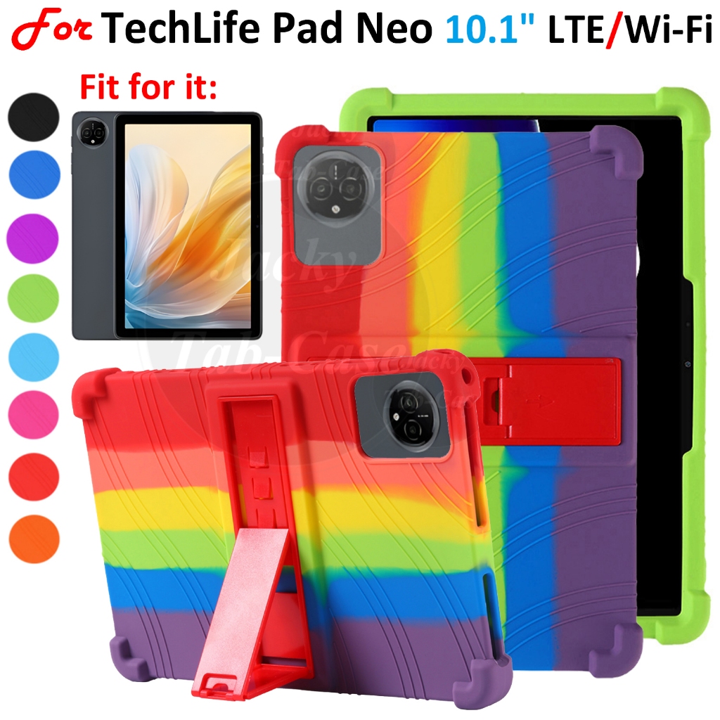 For TechLife Pad Neo 10.1" LTE | Tablet PadNeo Wi-Fi 2024 Upgrade Thicken Soft Silicone Shockproof Cover Stand Case TLPAD002