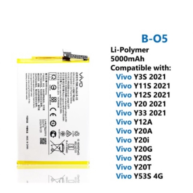For VIVO Y3s 2021 Y11S Y12A Y20 Y20T Y33 Y53S 4G B-O5 High Quality Battery Replacement