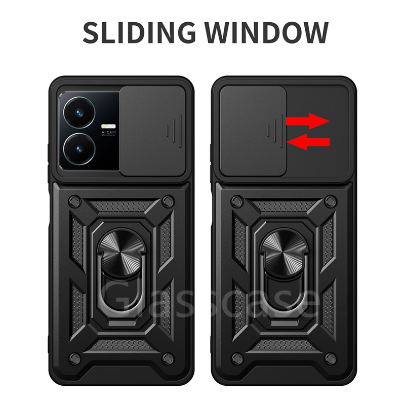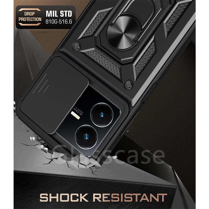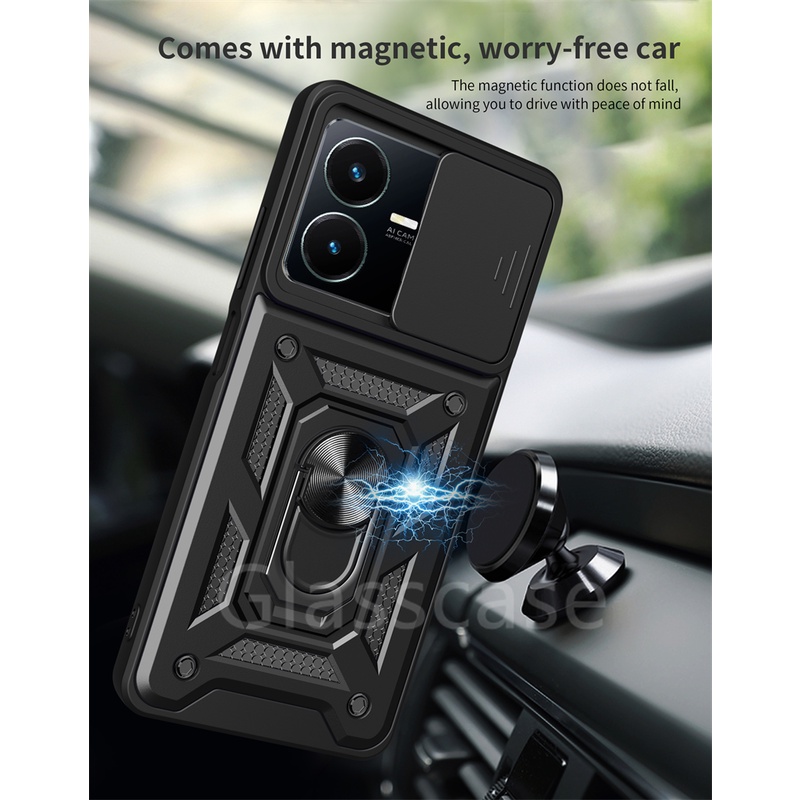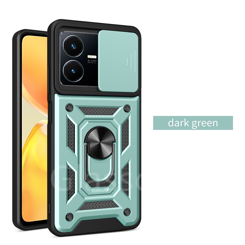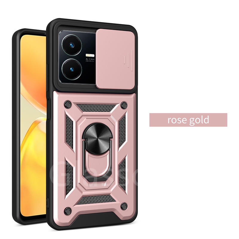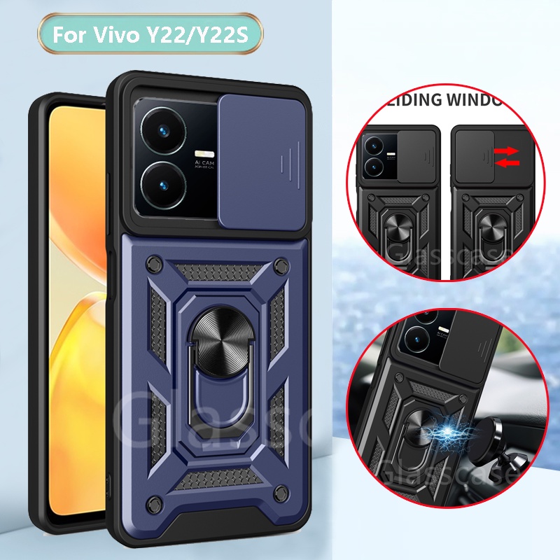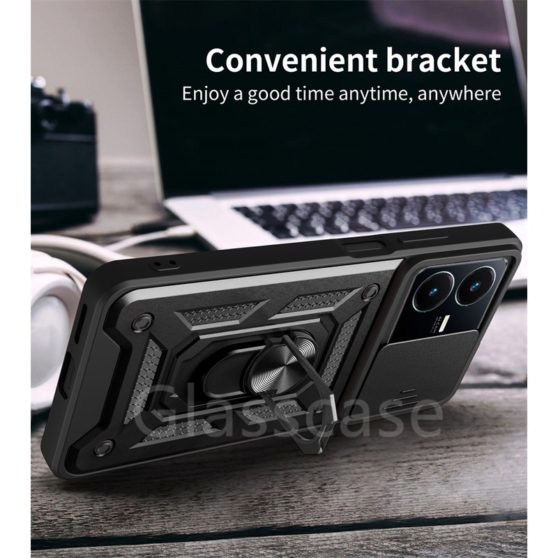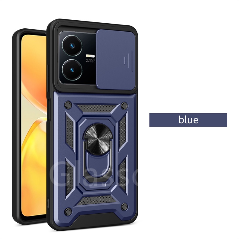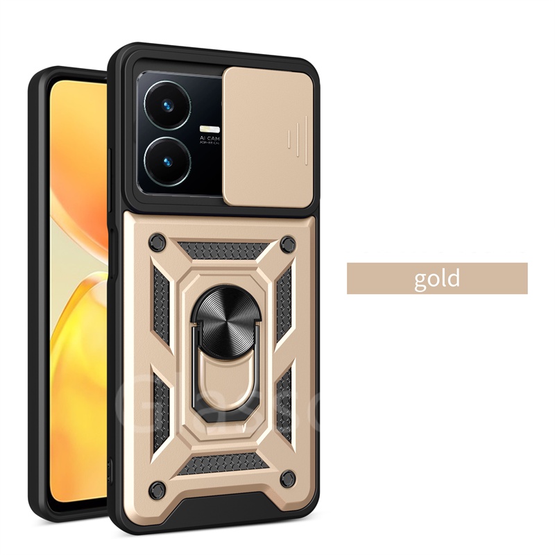 For Vivo Y02 Y02T Y22 Y22S VivoY22S VivoY22 VivoY02T Phone Case Metal Armor Ring Bracket Stent Push Camera Shockproof Protection Casing Hard Cover