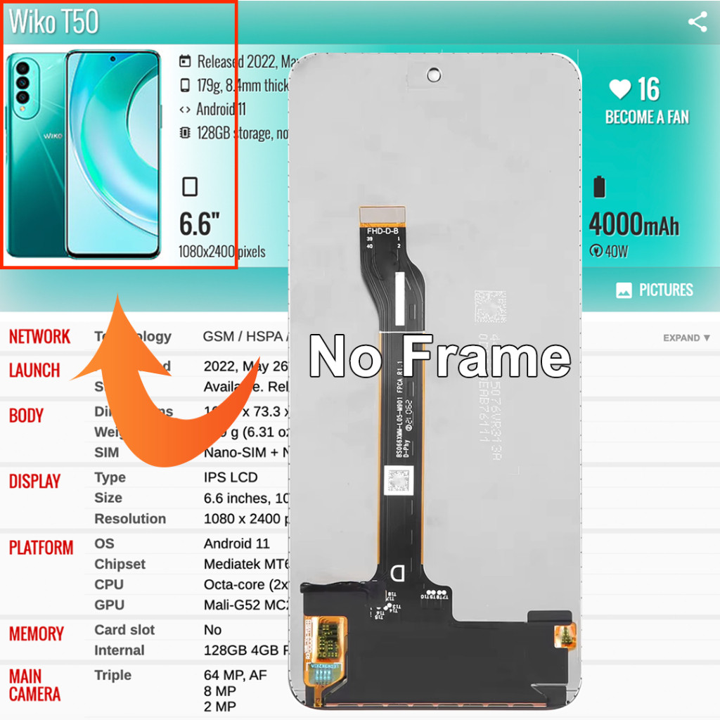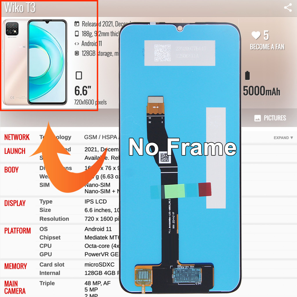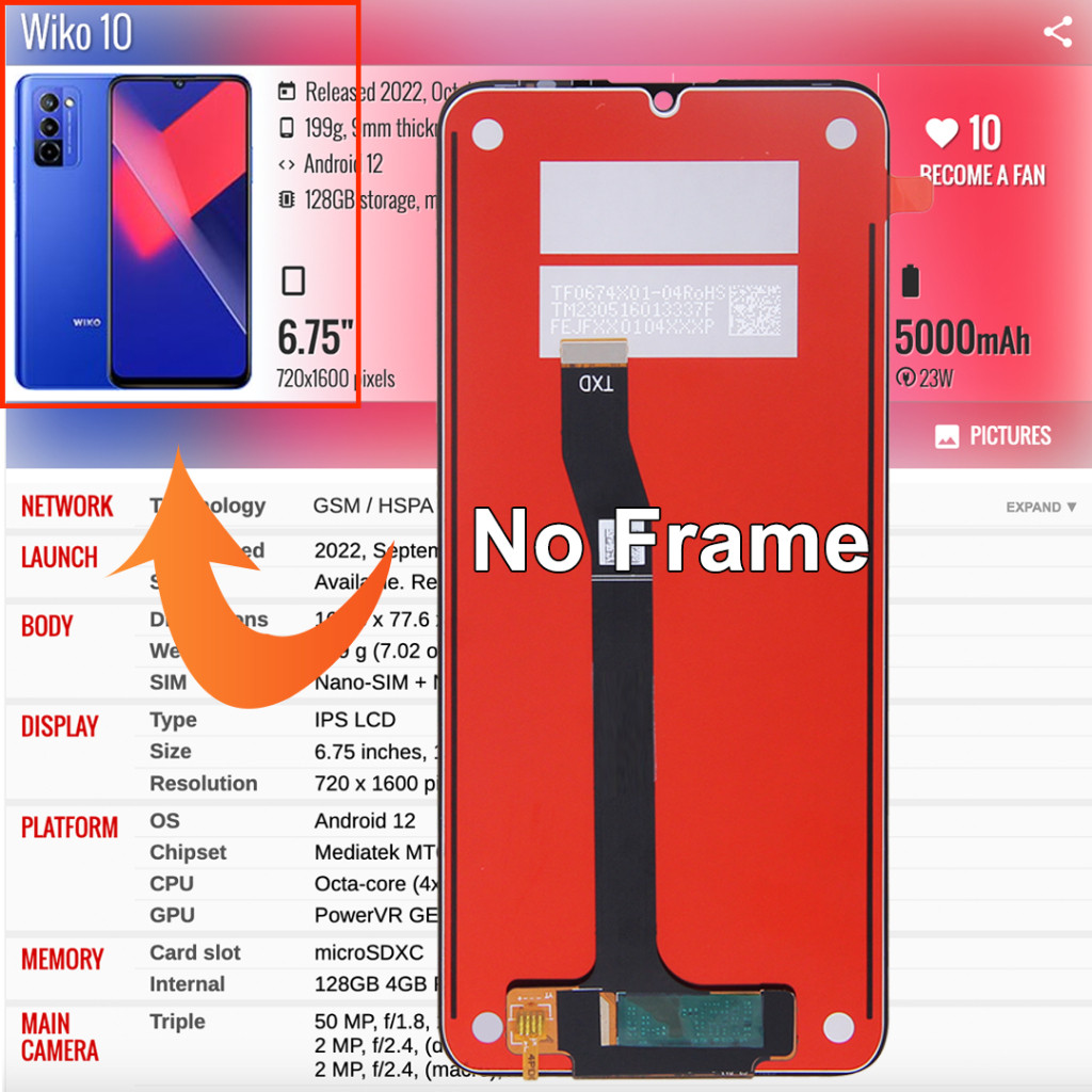 For Wiko 10 / T3 / T10 / T50 LCD Display Touch Screen Digitizer Assembly Replacement