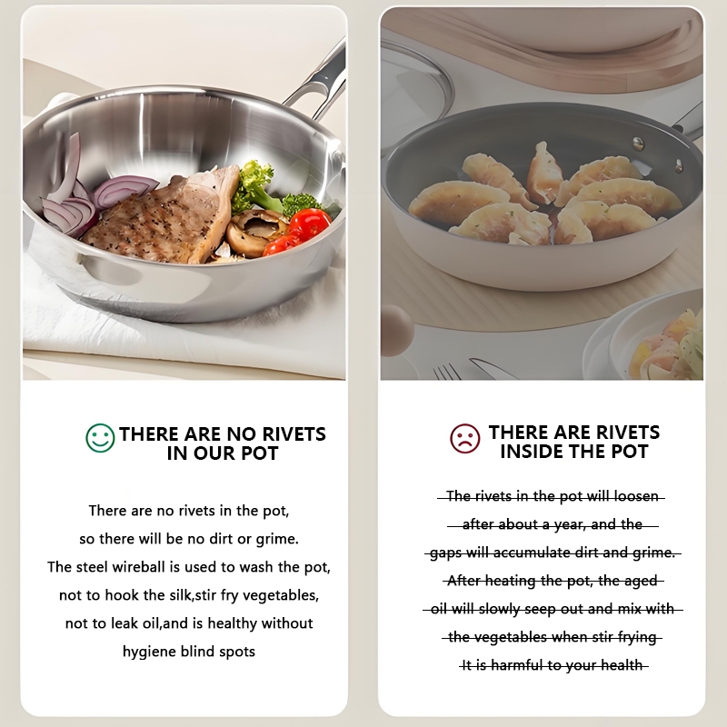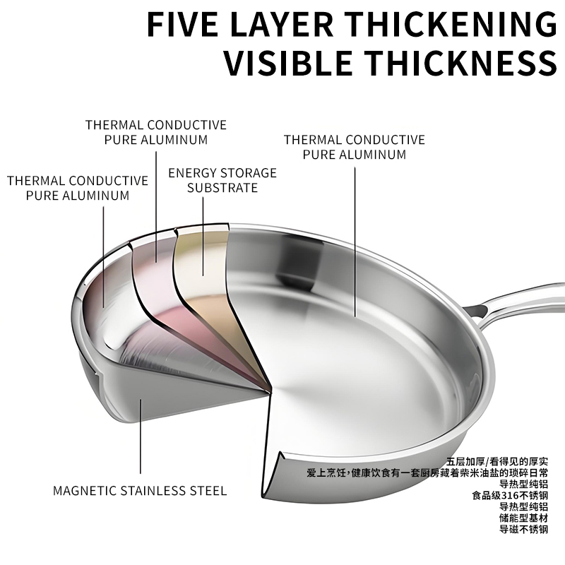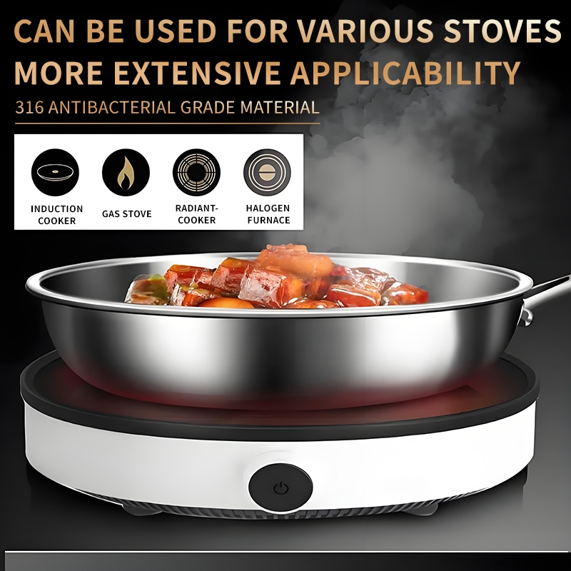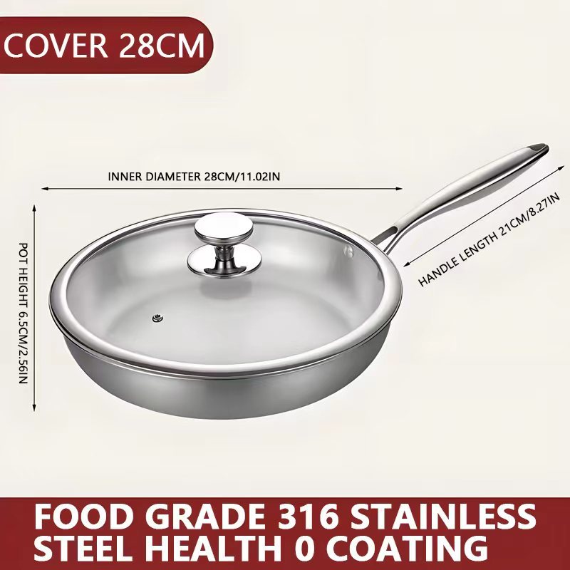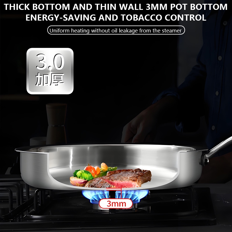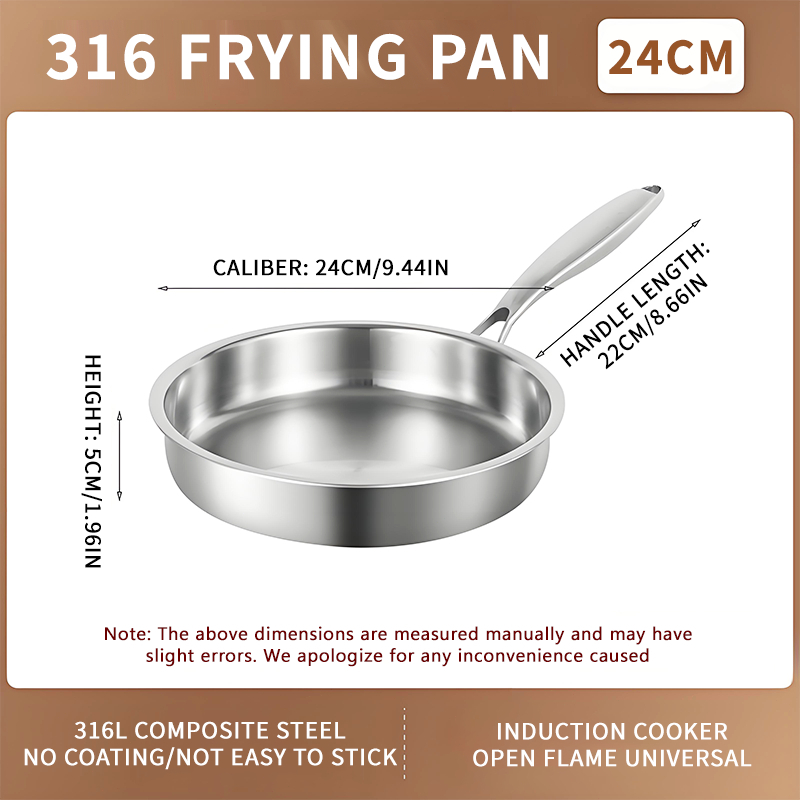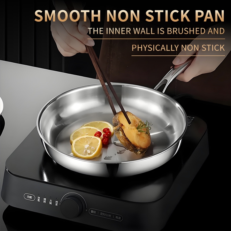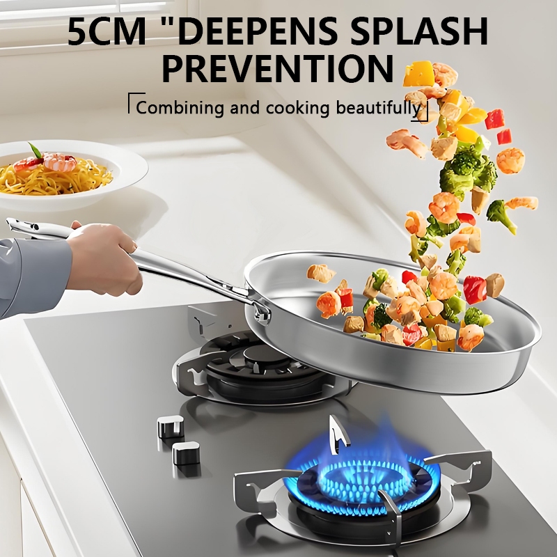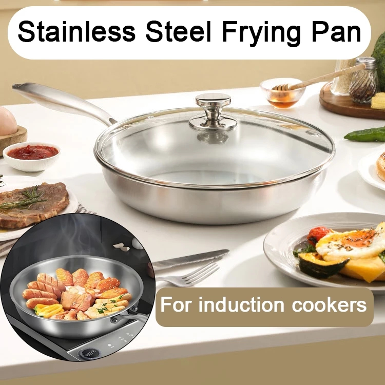 Frying Pan 304 Stainless Steel Frying Pan Uncoated Fry Pan Induction Cooker Gas Stove Compatible