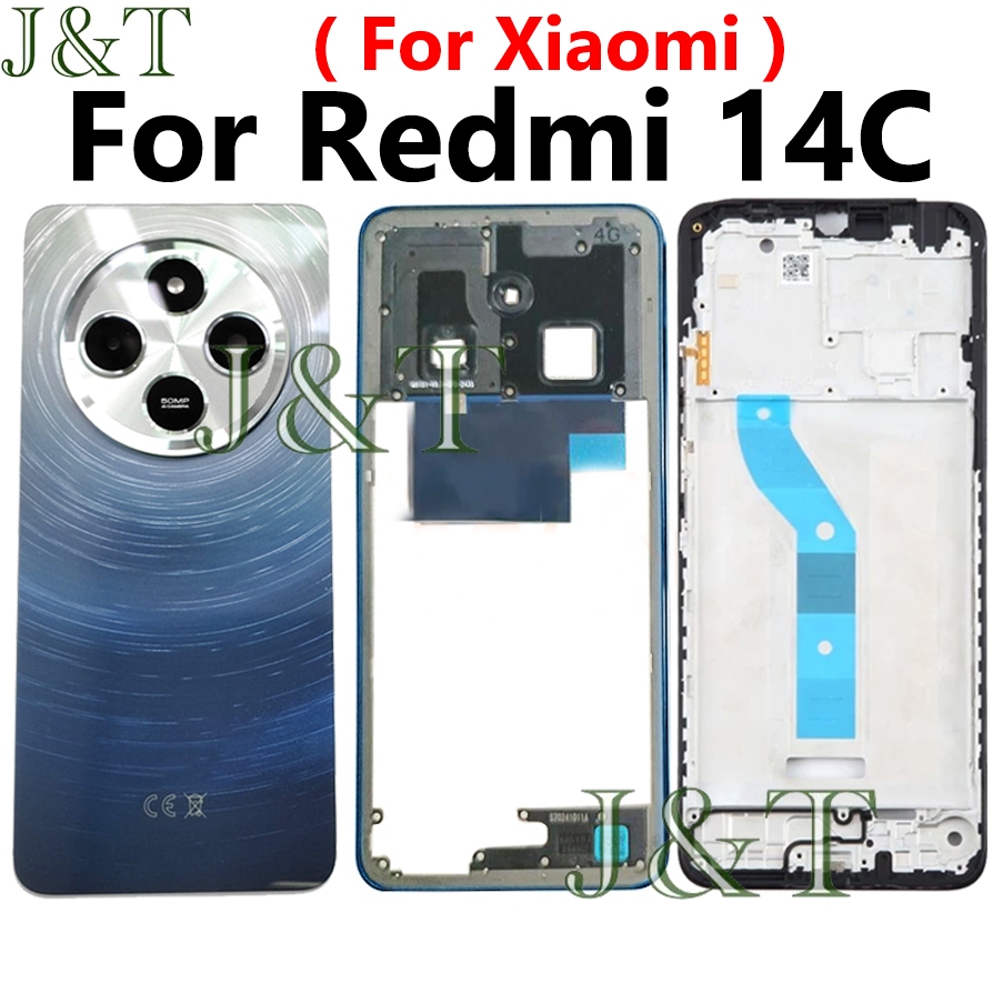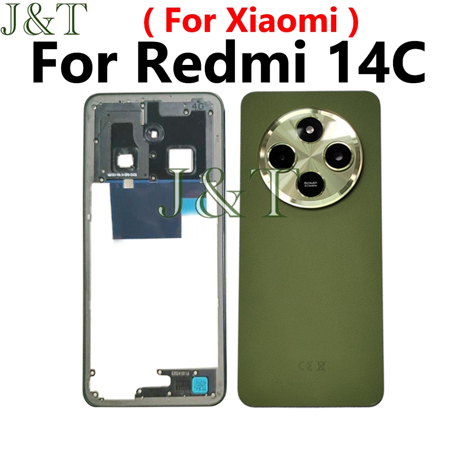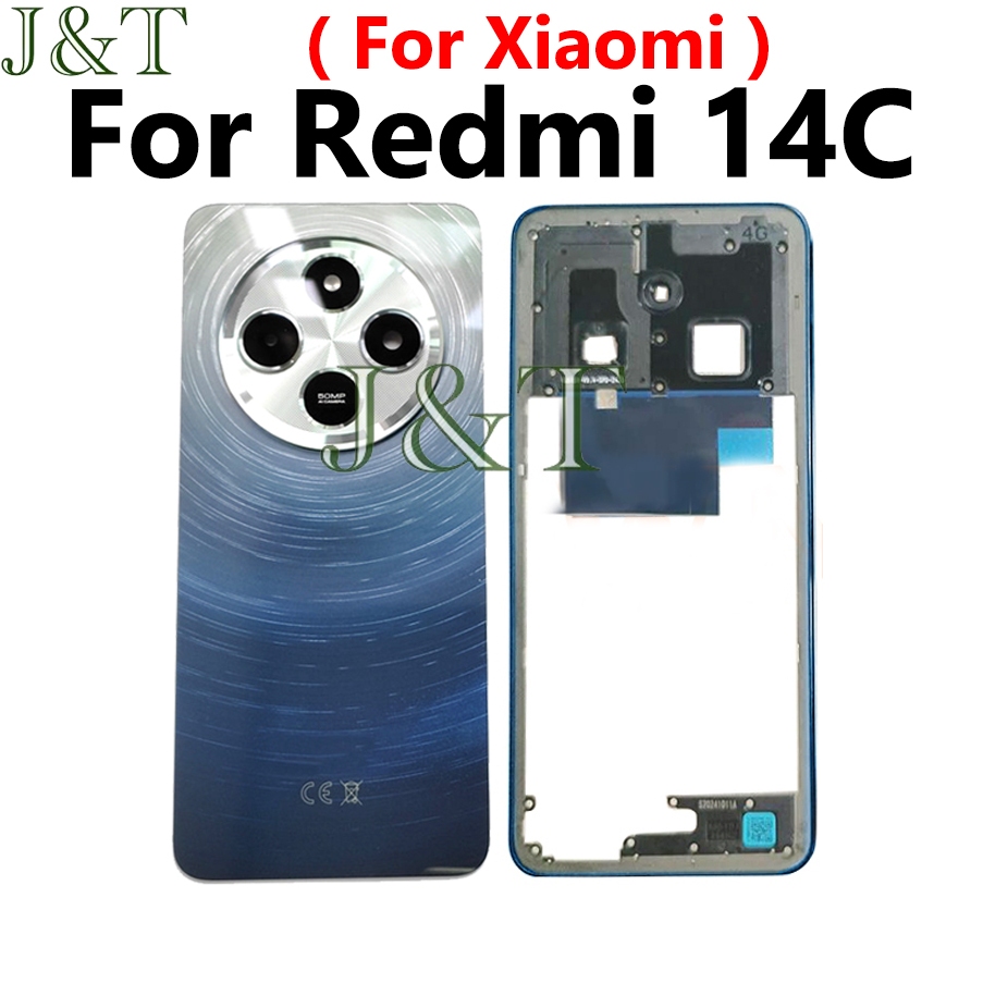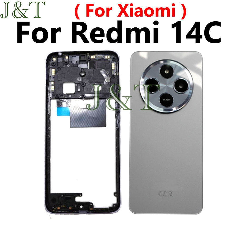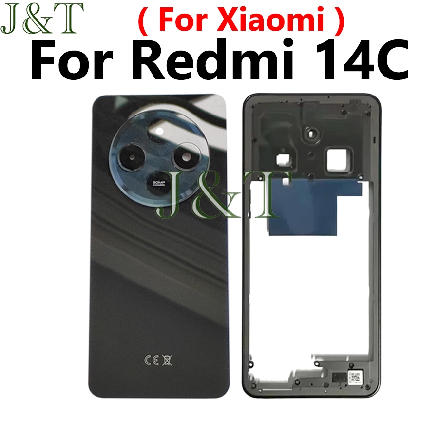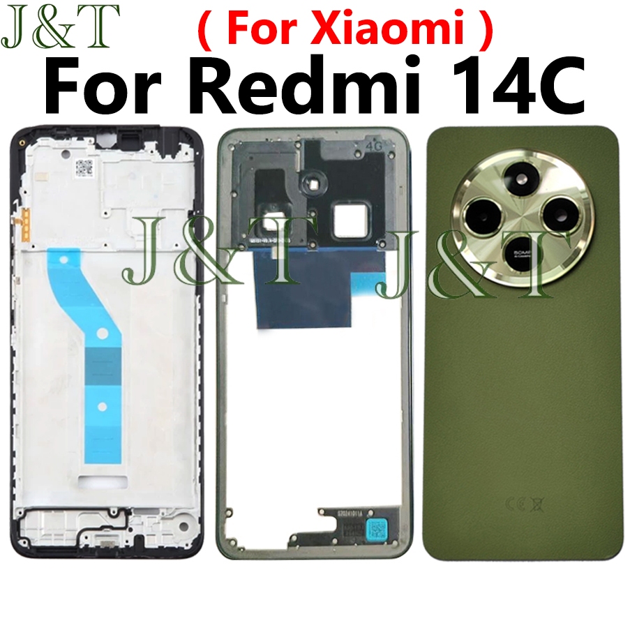 For XIAOMI Redmi 14C Battery Back Cover +Middle Frame Buttons Camera Lens+ LCD Front Frame Replacement