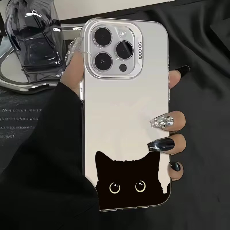For Xiaomi Mi 14T 14 13 12 12T 13T Pro Mi 11 Lite 5G NE Poco F6 F5 X5 X6 M6 Pro 4G Cute Black Cat Pattern IMD Metal Hard Shockproof Cover