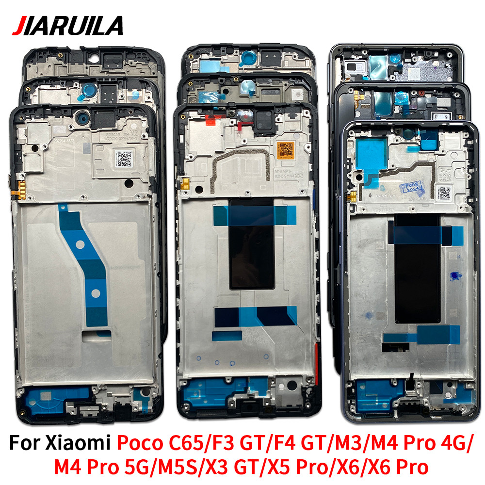 For Xiaomi Poco C65 X3 F3 F4 GT M3 M4 Pro 4G 5G M5S X5 X6 Pro Middle Frame Front Bezel Cover Chassis Housing Back Plate LCD Holder Replacement