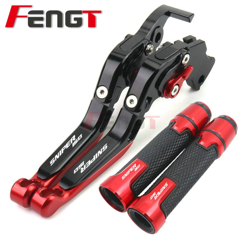 For YAMAHA YAMAHA Sniper 150 / 155 Sniper150 Sniper155 modified high-quality CNC aluminum alloy 6-stage adjustable Foldable brake lever clutch lever with Handlebar grips glue Set