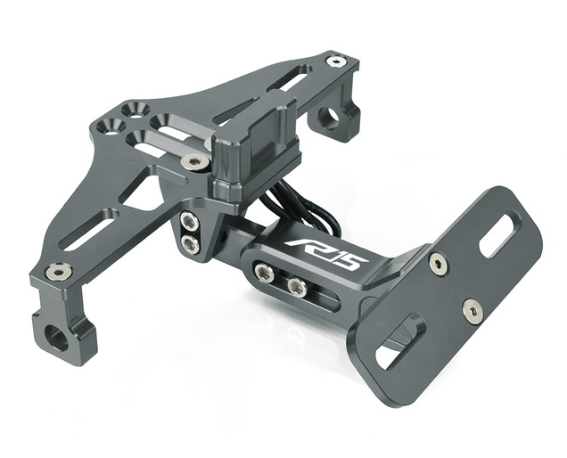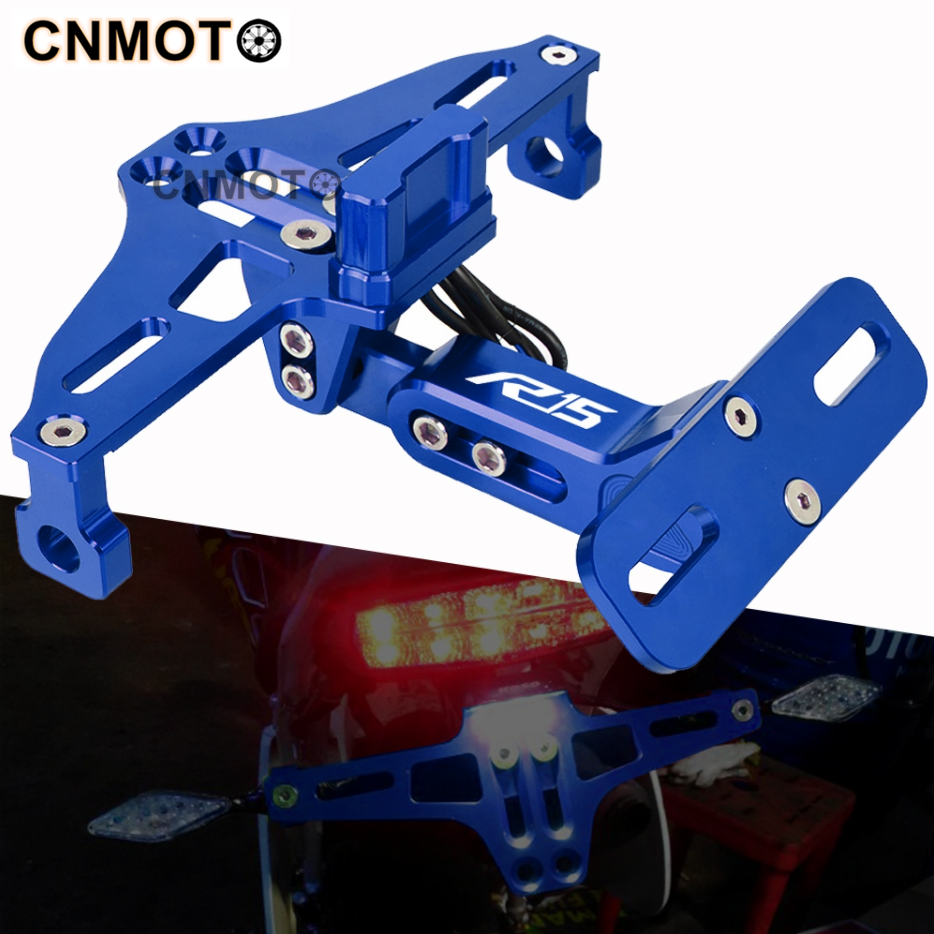 For YAMAHA YZF-R15 V1 V2 V3 V4 R15M 2013-2023 Adjustable CNC License Plate Bracket with LED License Plate Frame Number Plate Holder Motorcycle Aeccessories YZFR15 YZF R15