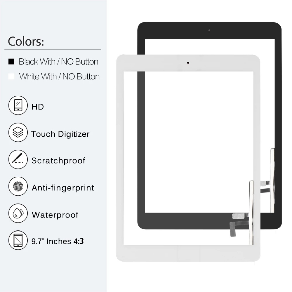 For iPad 6th Gen iPad 9.7 2018 A1893 A1954 LCD Outer Touch Screen Digitizer Front Glass Display iPad 9.7 2017 5th A1822 A1823 Touch Panel Replacement
