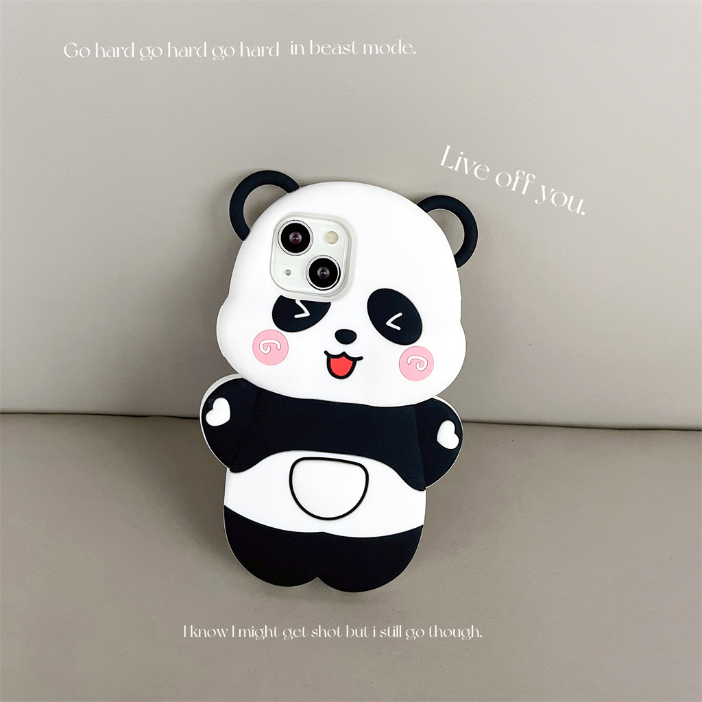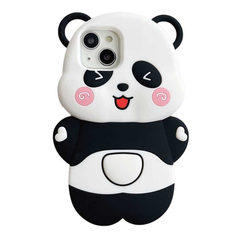 For iphone Case 15 Pro Max 14 Pro Max 13 Pro Max 12 Pro Max 3D Stereoscopic panda Silicone Soft Case