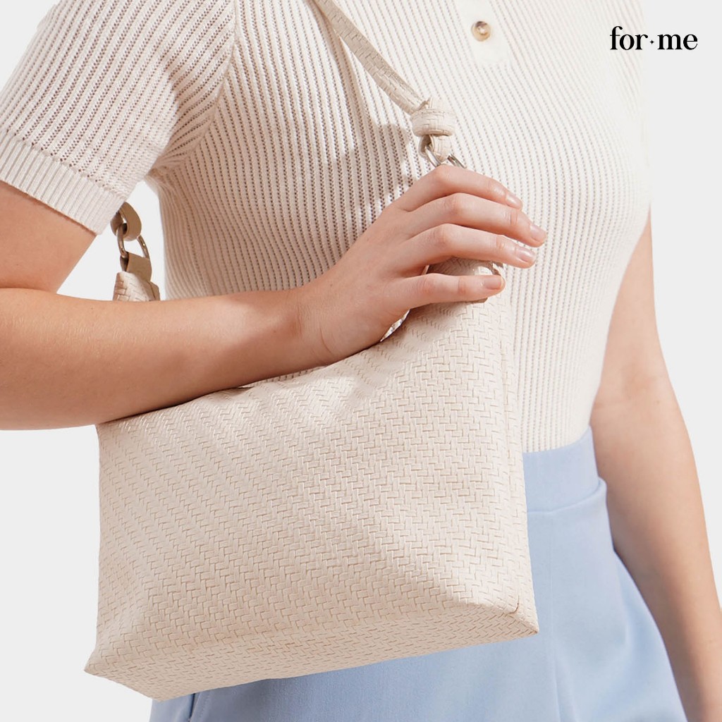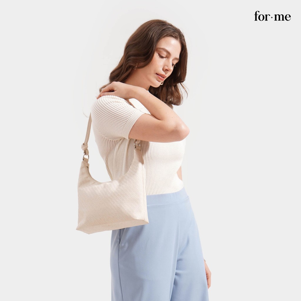 ForMe Weaved Leather Shoulder Bag For Women (Cream)