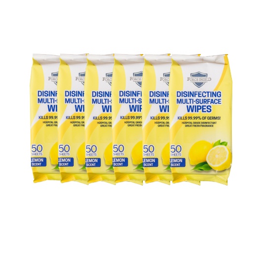 Forceshield Lemon Scent Disinfecting Multi-Surface Wipes 50's Pack of 6