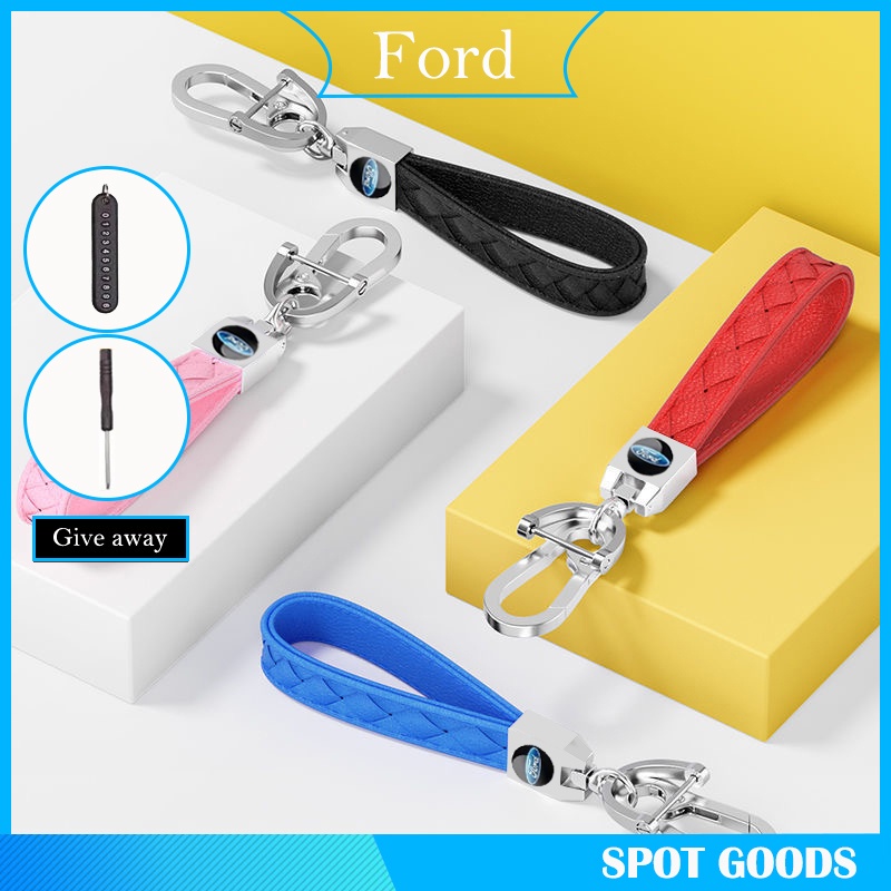 Ford Car Keychain Leather Metal Car Logo Key Chain