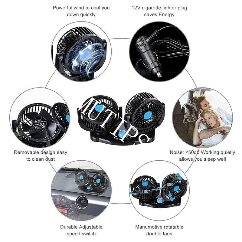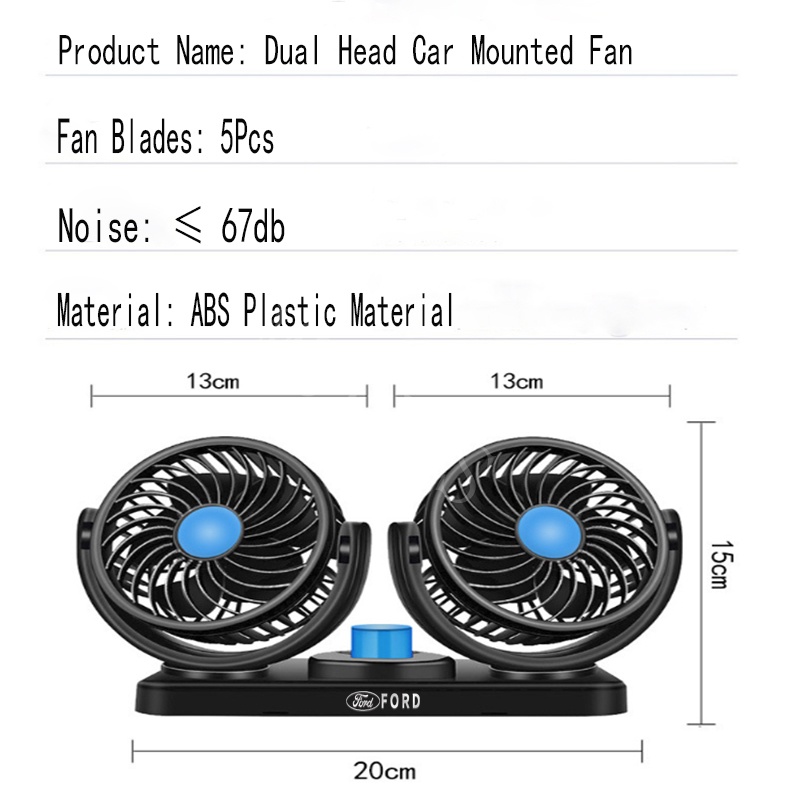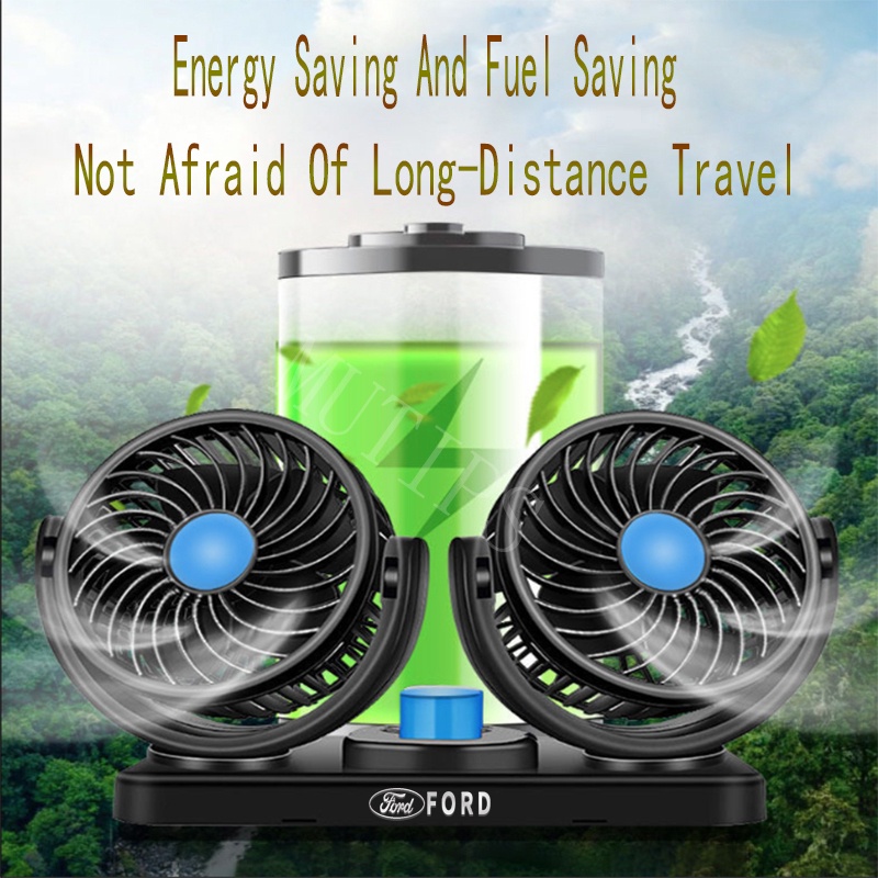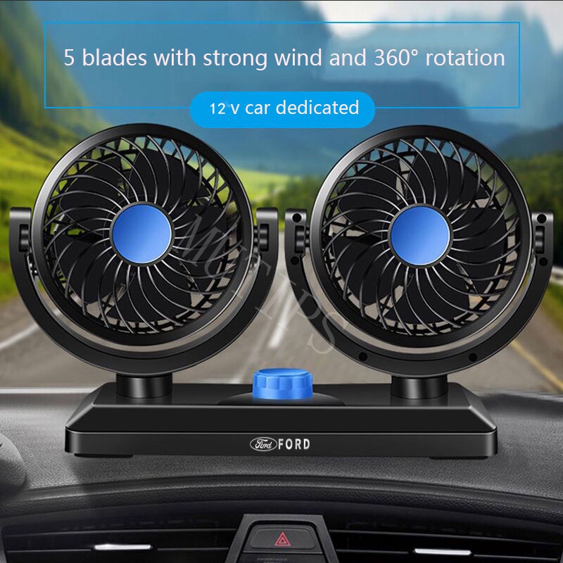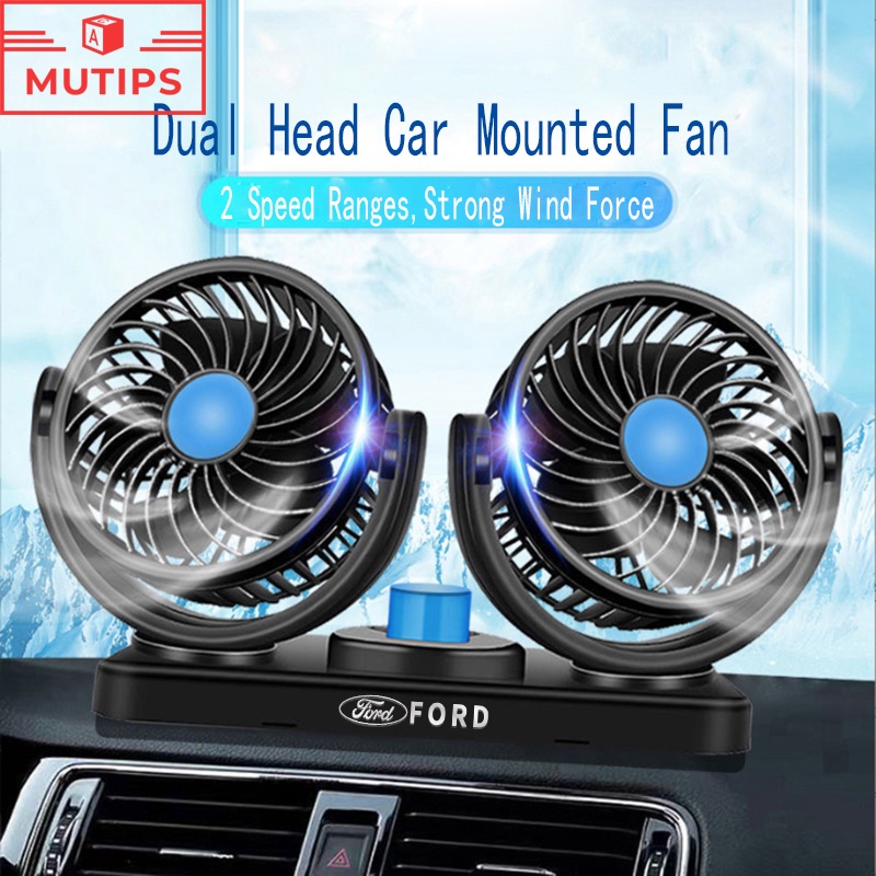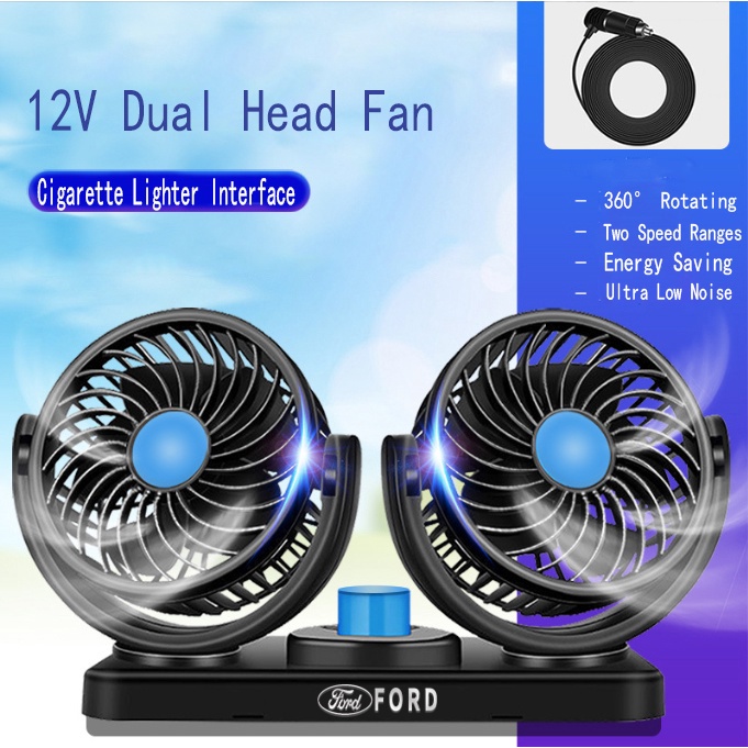 Ford Car Portable Dual Head Fan 12V Cigarette Lighter Interface Mini Air Cooler For Territory EcoSport Everest Bronco Mustang Explorer Ranger Raptor Accessories