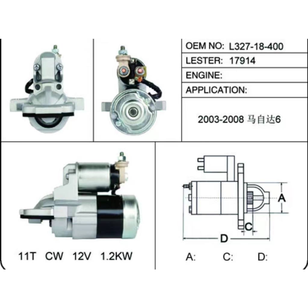 Ford Escape Starter Motor Assembly/2001-2006/1st Gen/L327-18-400/L327 18400/12V/2002 2003 2004 2005