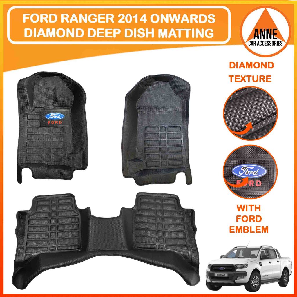 9D TPE / 5D Diamond Deep Dish Matting Ford Ranger T6 T7 T8 Wildtrak Raptor 2012 - 2022 Mat Liner
