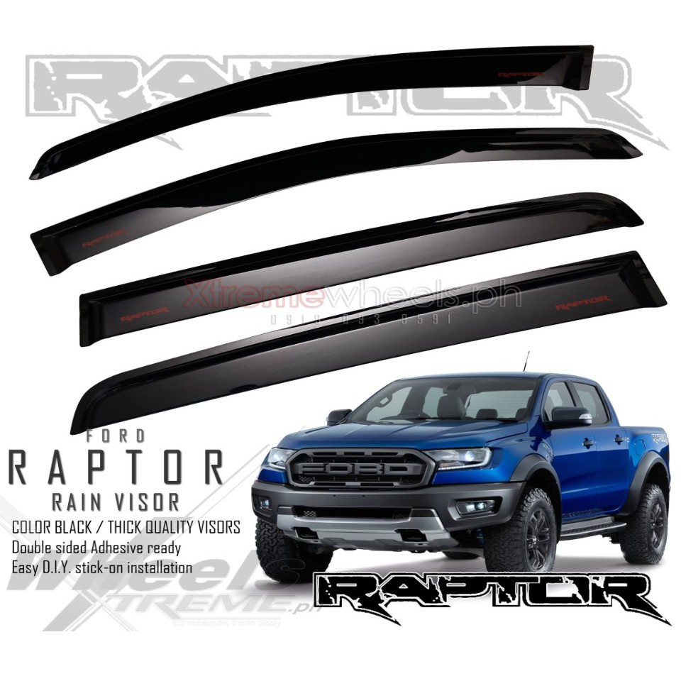 Ford Raptor 2019-2022 Window Visor Thailand Made with Raptor logo color Red ( raptor accessories )