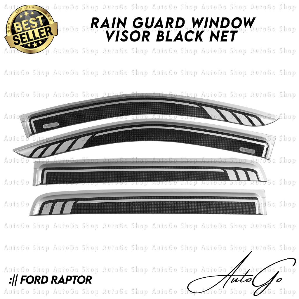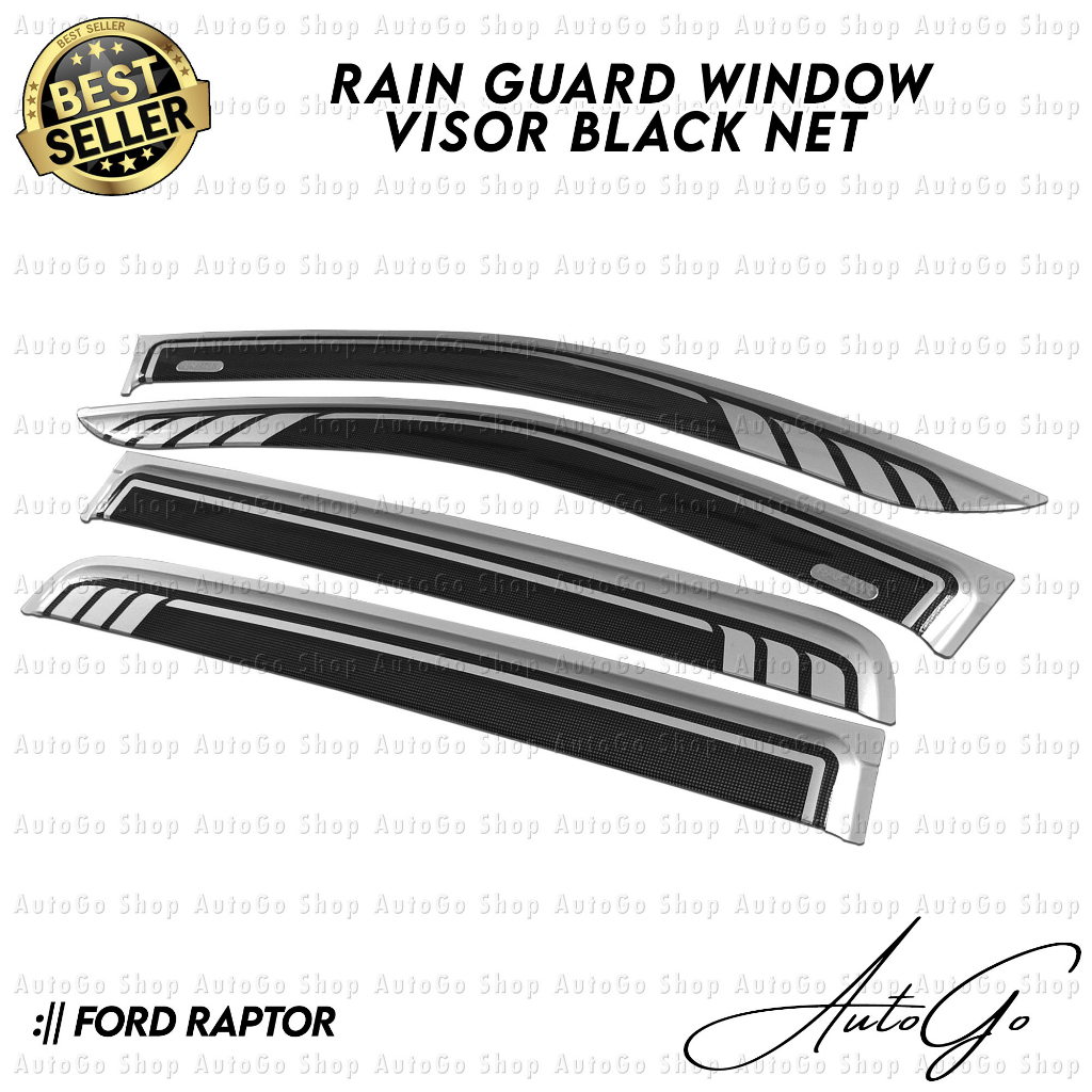 Ford Raptor 2019-2023 Rain Guard Window Door Visor (Two Toned / Black Net)