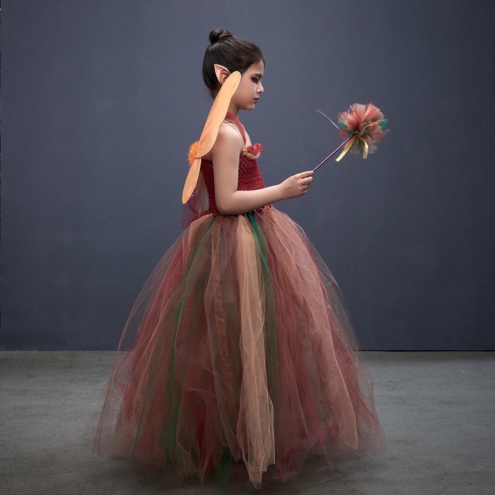 Forest Fairy Princess Costume for Halloween Birthday Party Fancy Dress Fall Children Woodland Nymph Pixie Gown Tutu Dress Wing