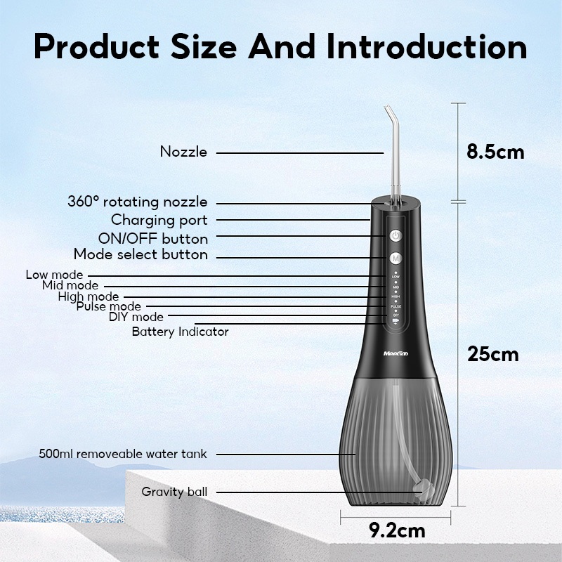 MeeGoo Water Flosser 500ML Oral Irrigator Portable Dental Flusher Electric Water Flosser Teeth Clean