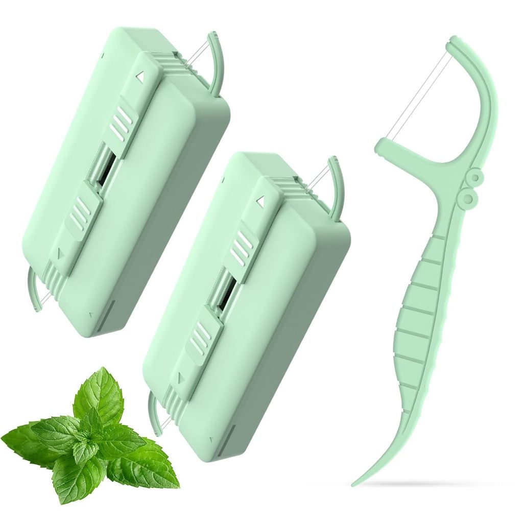 New ! ! ! Twin Line Portable Floss Picks Case-Perfect for Tight Teeth-Shred Resistant Lime Flavor Dental Floss-Double Line Flosser Super Clean Oral Care-Perfect Dental Tools(Purp