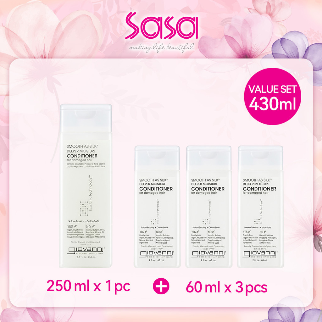 Giovanni Smooth As Silk Deeper Moisture Conditioner Value Set (250ml x 1pc + 60ml x 3pcs)
