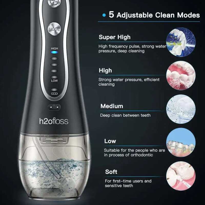 Tt H2ofloss 300Ml Rechargeable Cordless Portable Irrigator Water Er With 5 Modes, 6