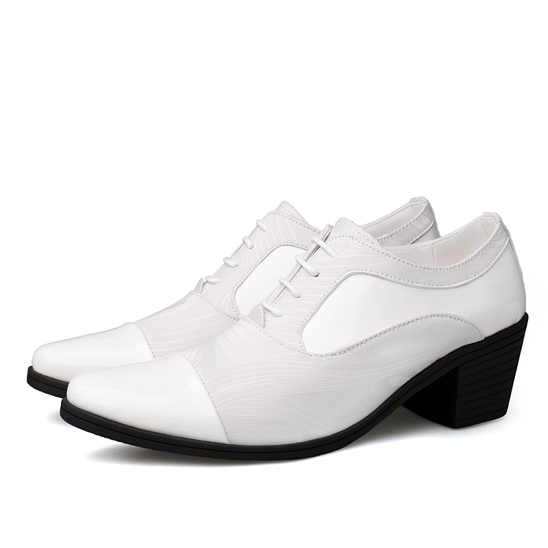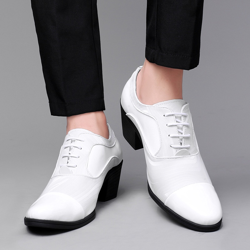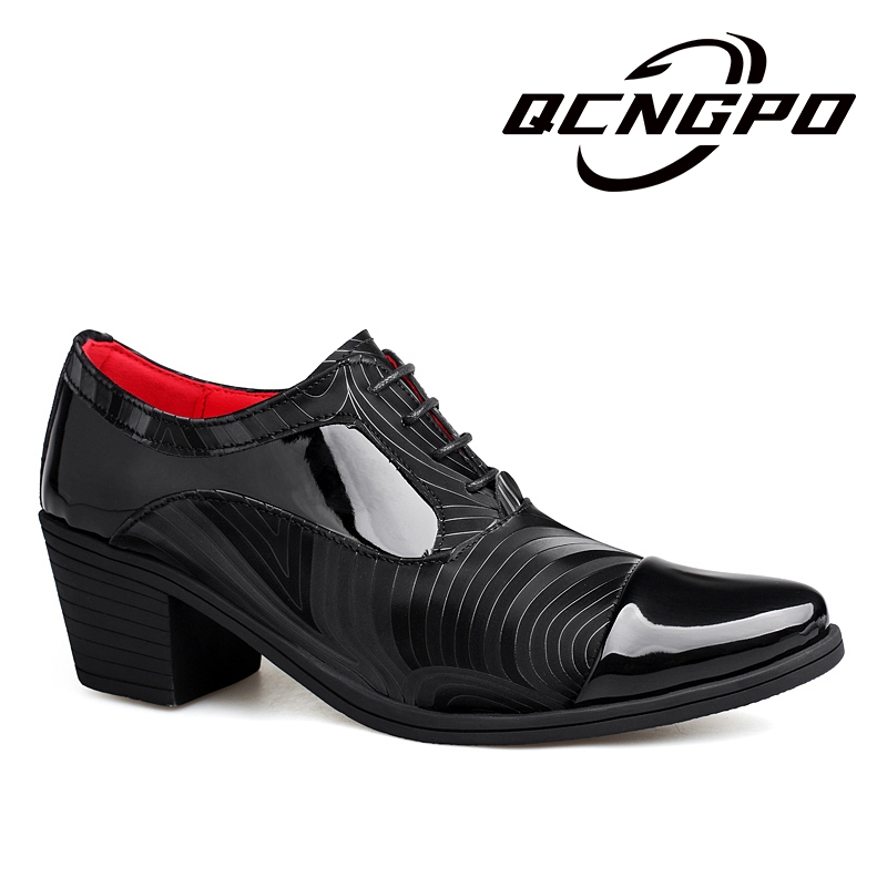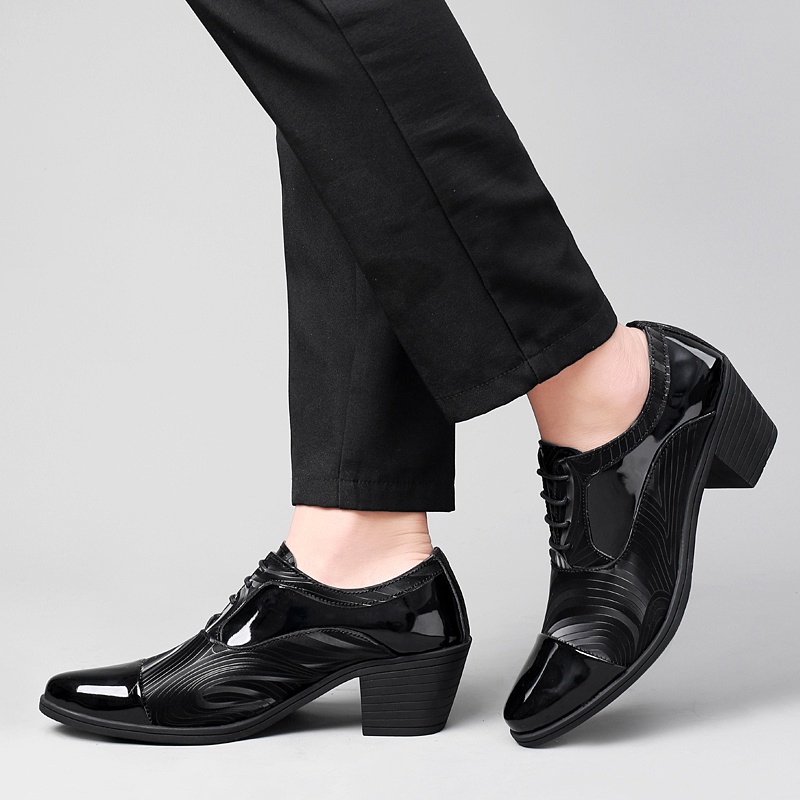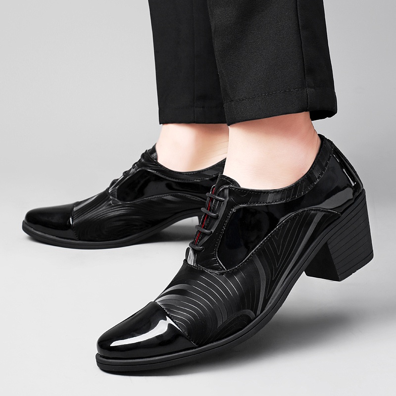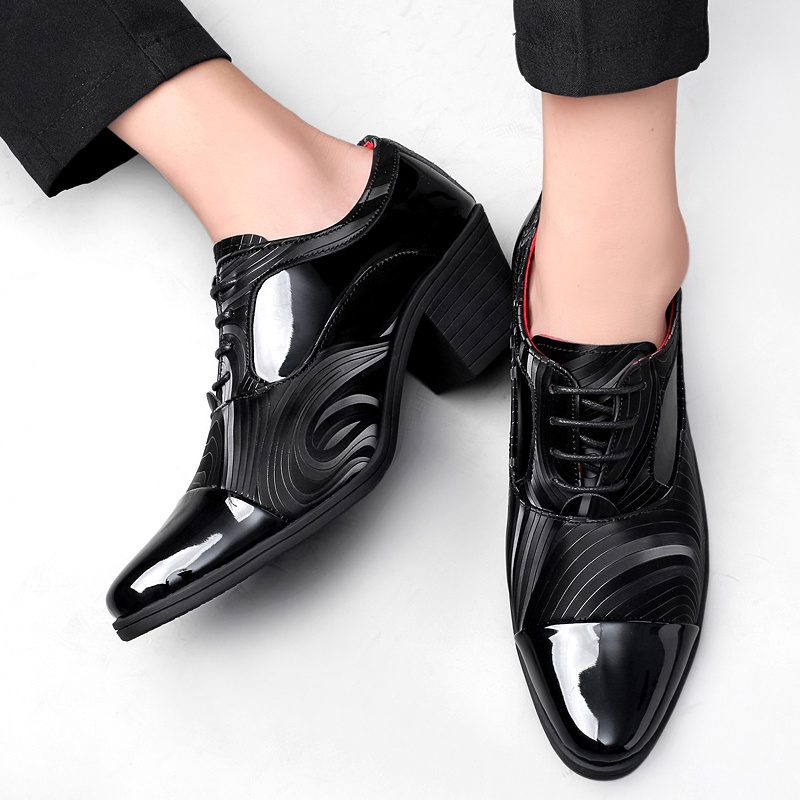 Formal Shoes Conference Men's Office Breathable Lace-Up Leather Waterproof Heightened 6cm High-Heeled Dress Derby Wedding Groom