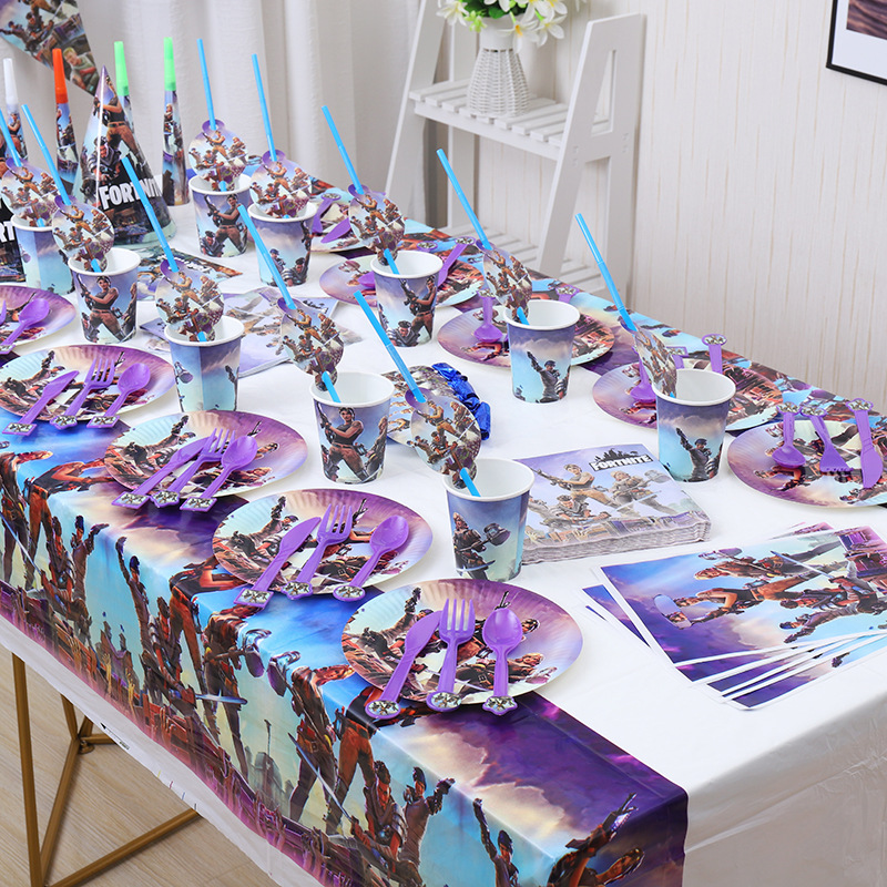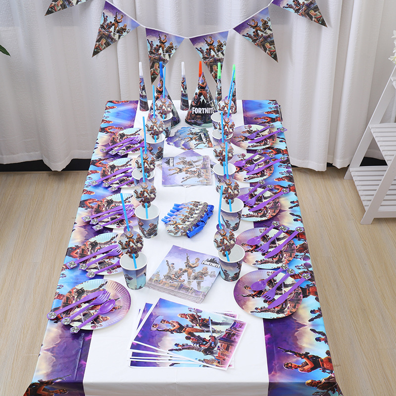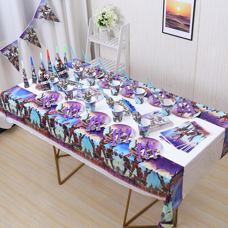 Fortnite Game Disposable Tableware Party Decoration Plate Banner Tablecloth Children Happy Birthday Decoration