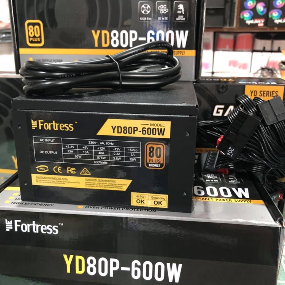 Fortress YD80P-600W True Rated Gaming Power Supply 80+ Bronze PSU with flat cables