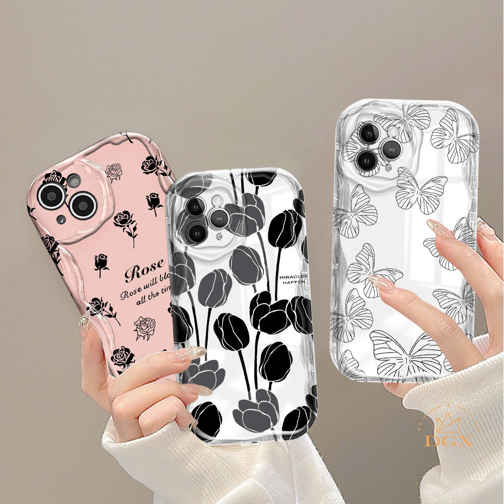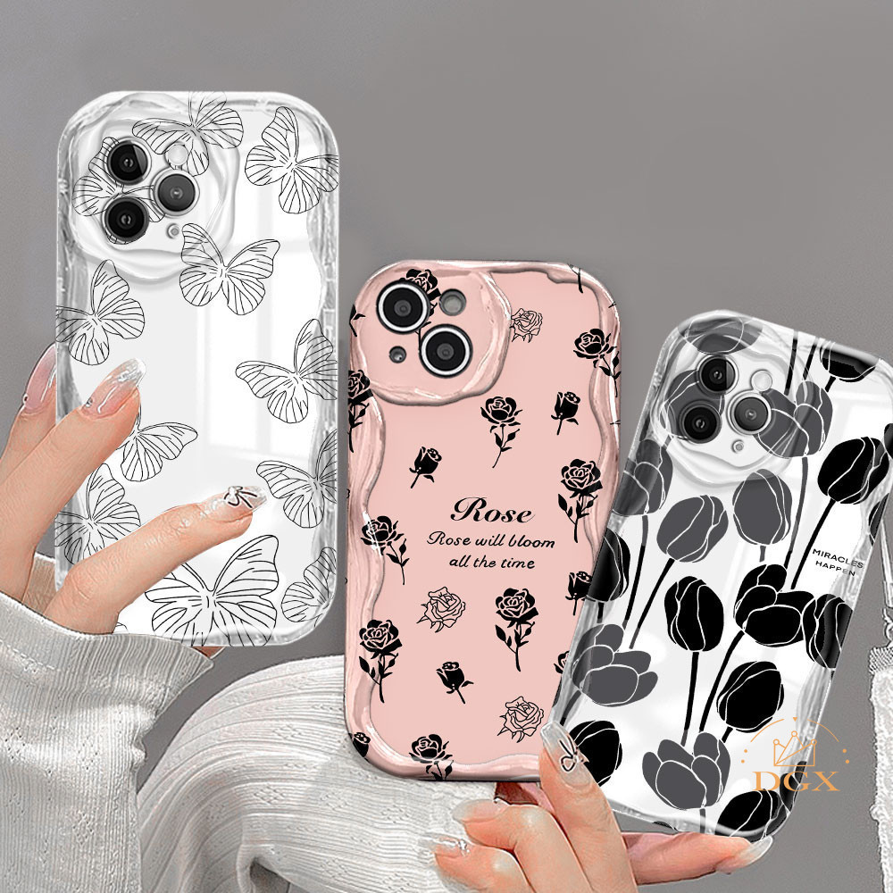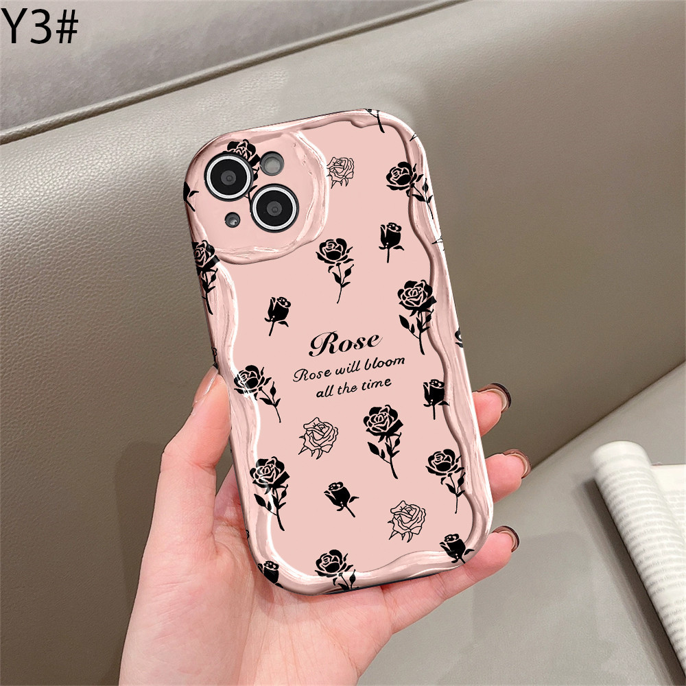 Foundation Dark Rose Casing For Vivo Y36 Y20 Y02A Y02T Y35 Y11 Y17 Y16 Y21 Y15 Y12 Y30i Y22 Y15s Y20s Y22s Y21A Y12i Y21s Y15A 3D Soft Wave Edge TPU Phone Case Cover DGX